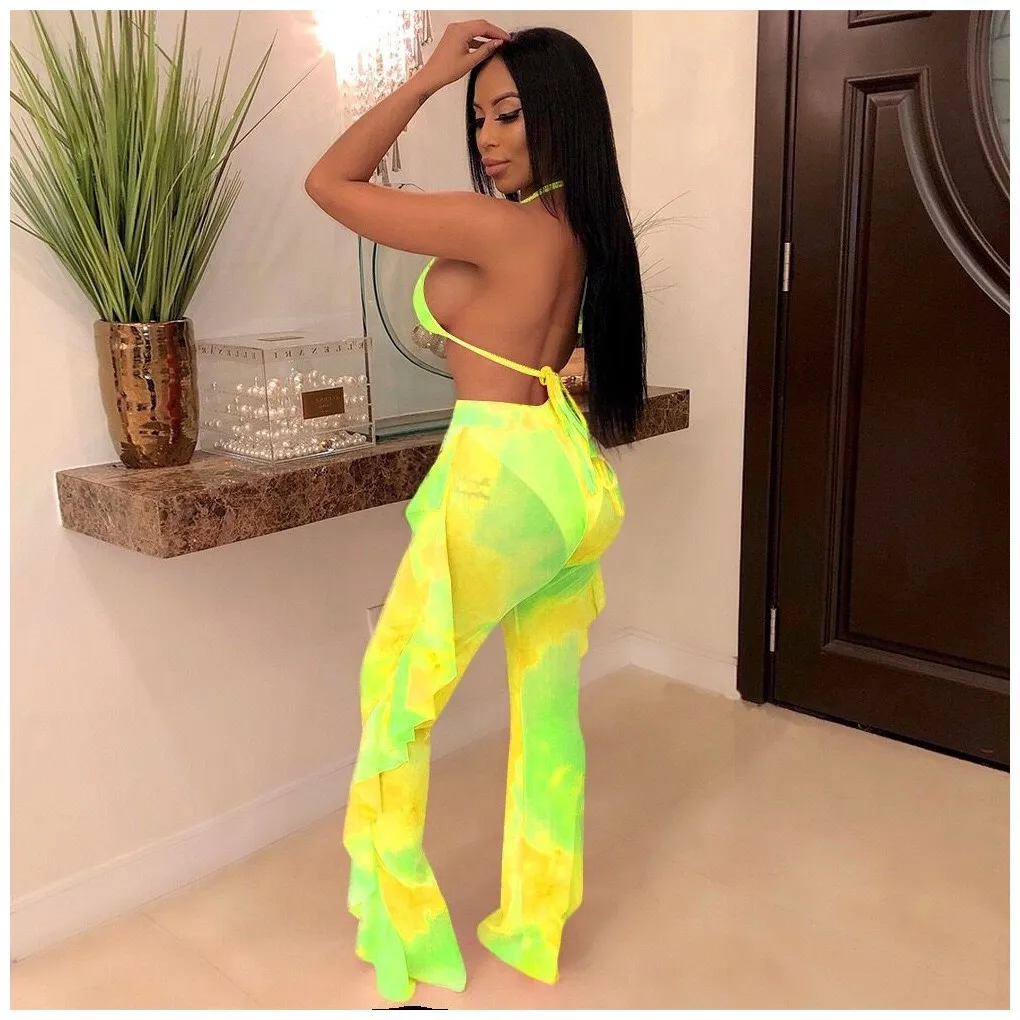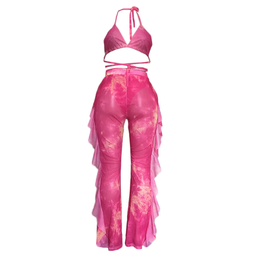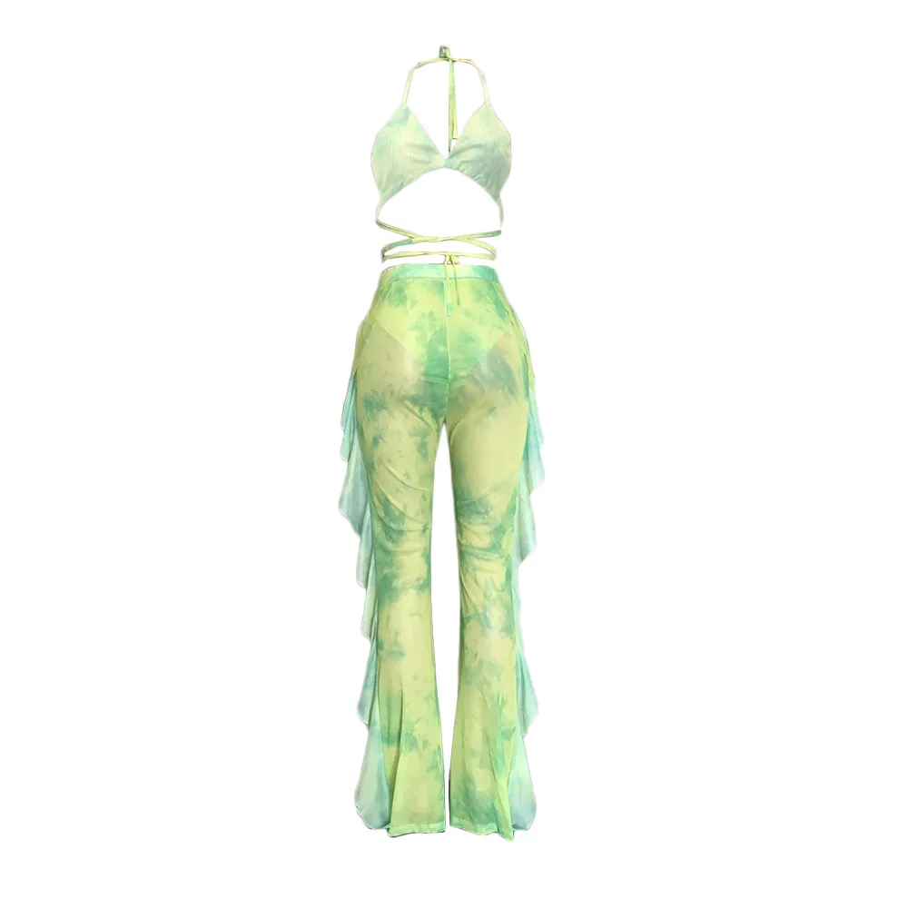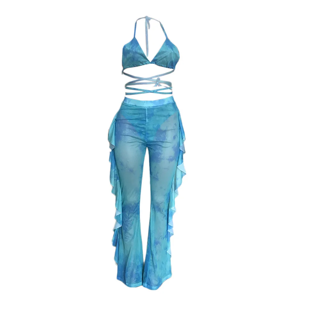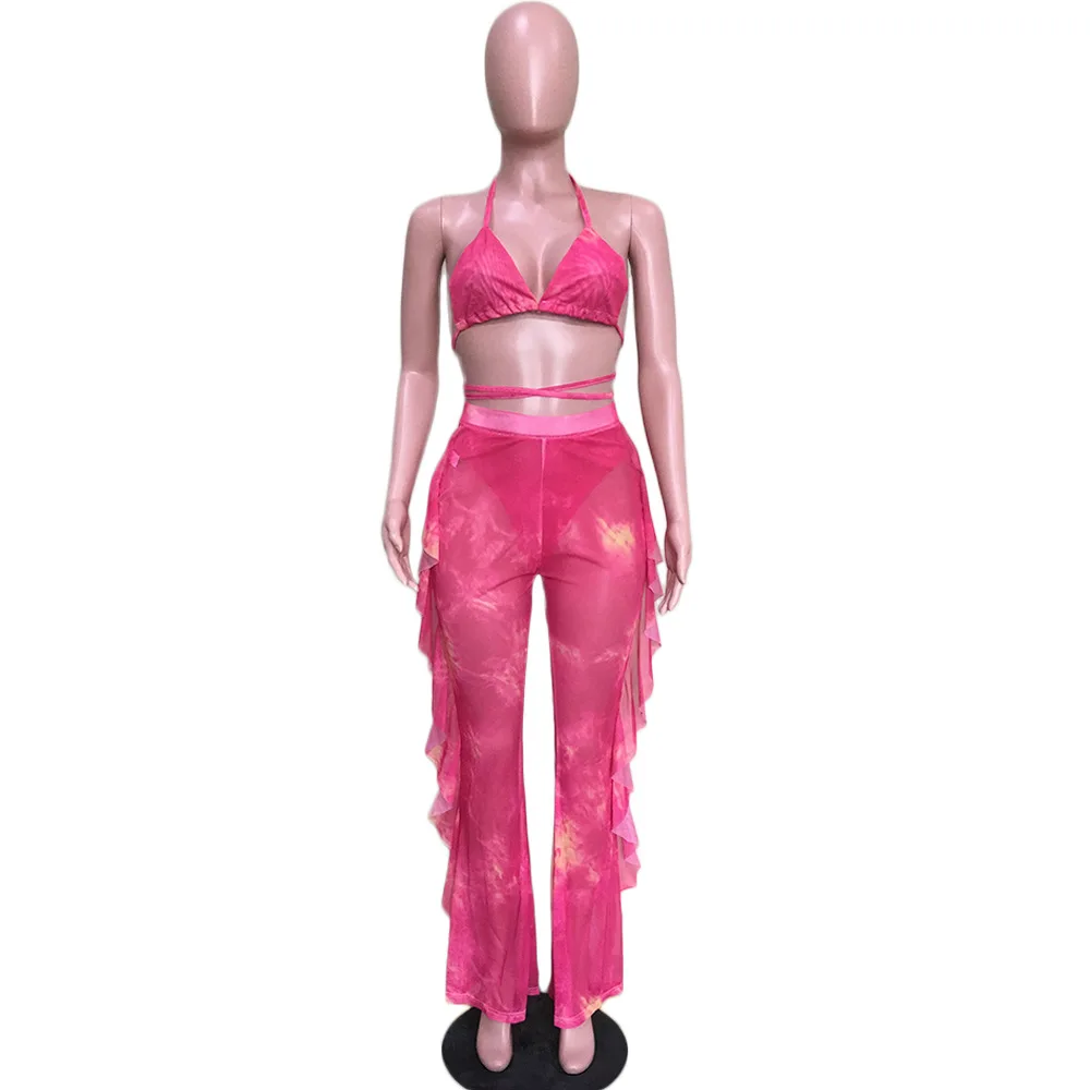 Новый купальник из шифона с широкими штанинами и акварельными сетчатыми вставками, привлекательный купальник-бикини из трех предметов для отпуска