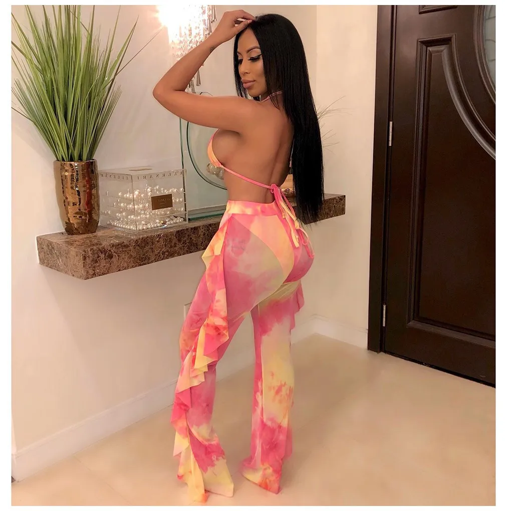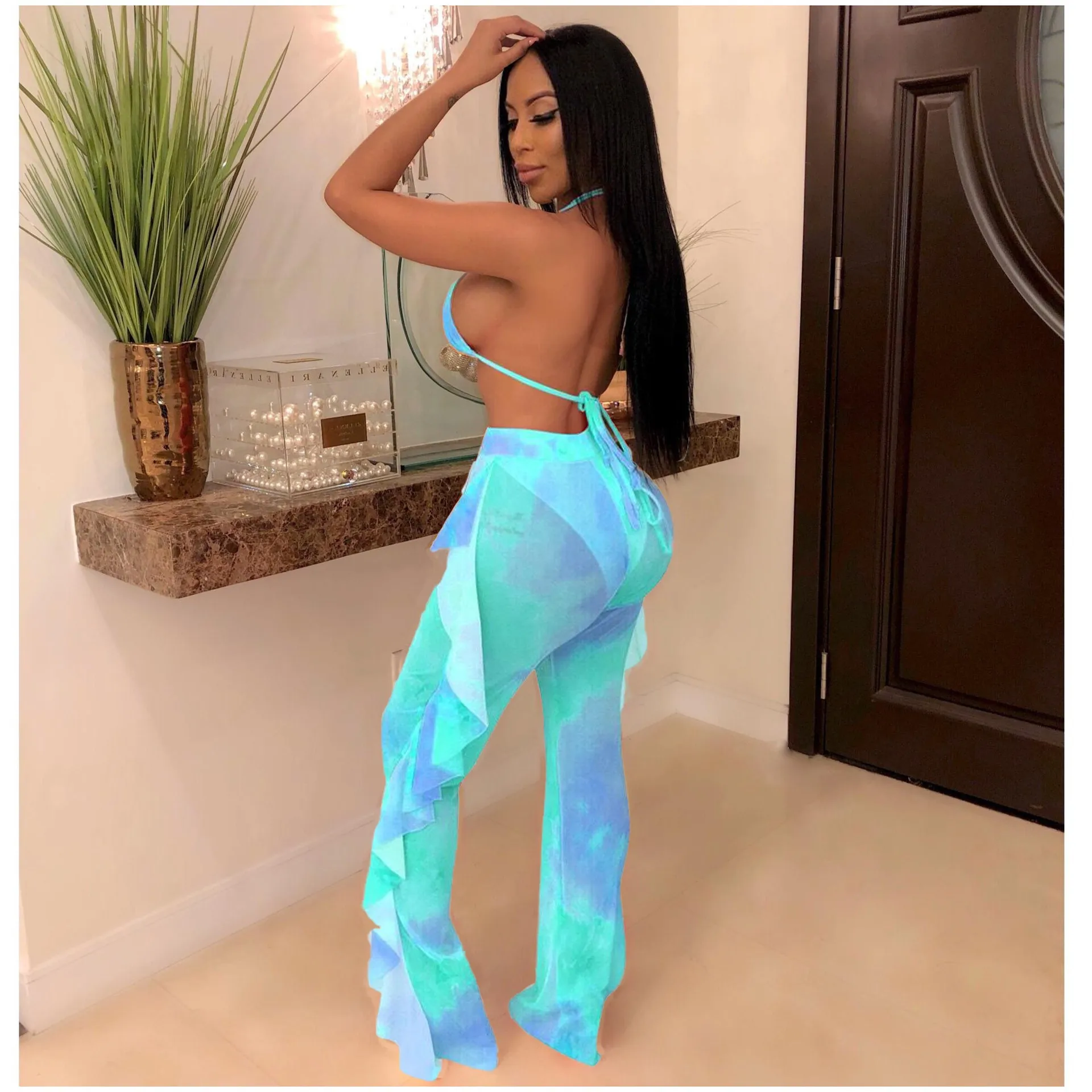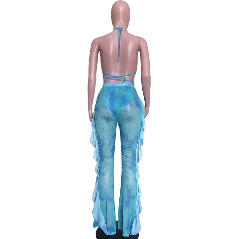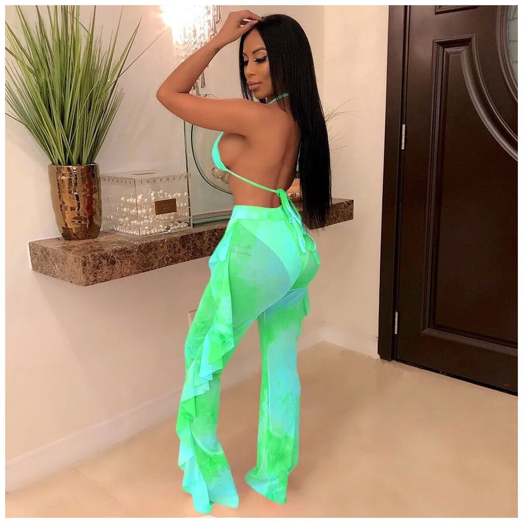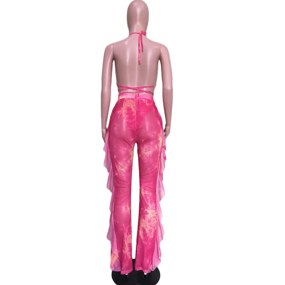 Новый купальник из шифона с широкими штанинами и акварельными сетчатыми вставками, привлекательный купальник-бикини из трех предметов для отпуска