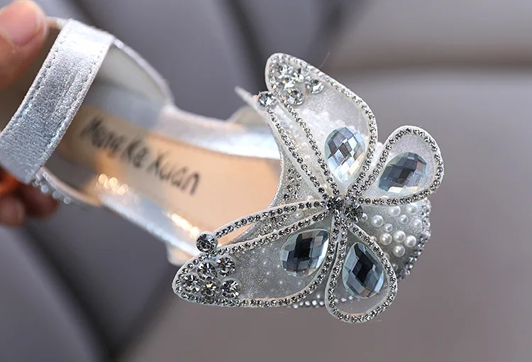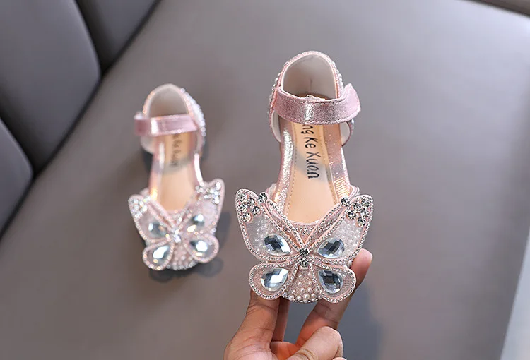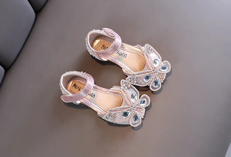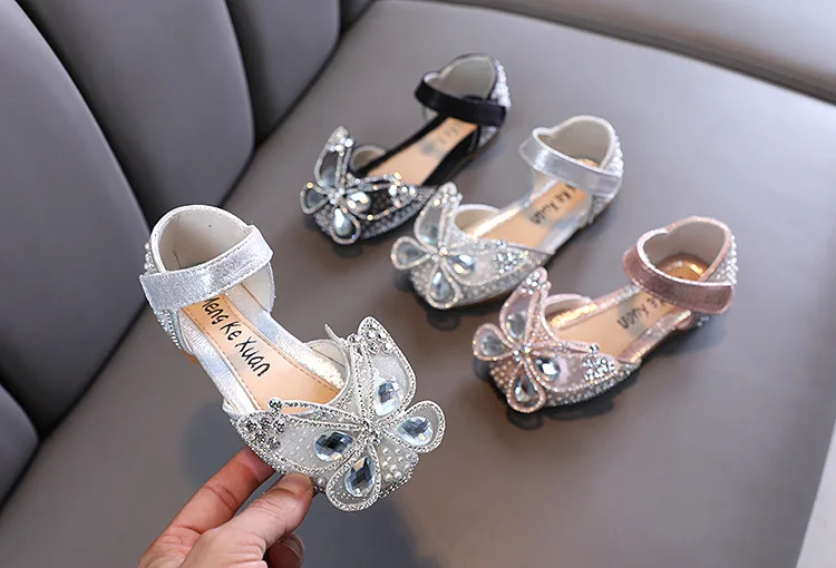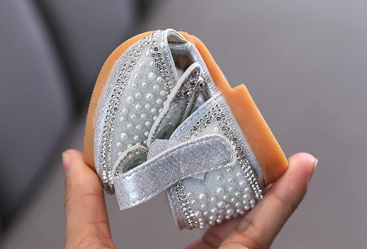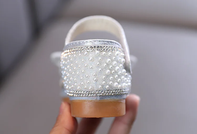 Новинка; Детские сандалии с блестками и кружевным бантом для девочек; Милые детские повседневные туфли принцессы с жемчужинами для танцев; Вечерние свадебные туфли для маленьких девочек