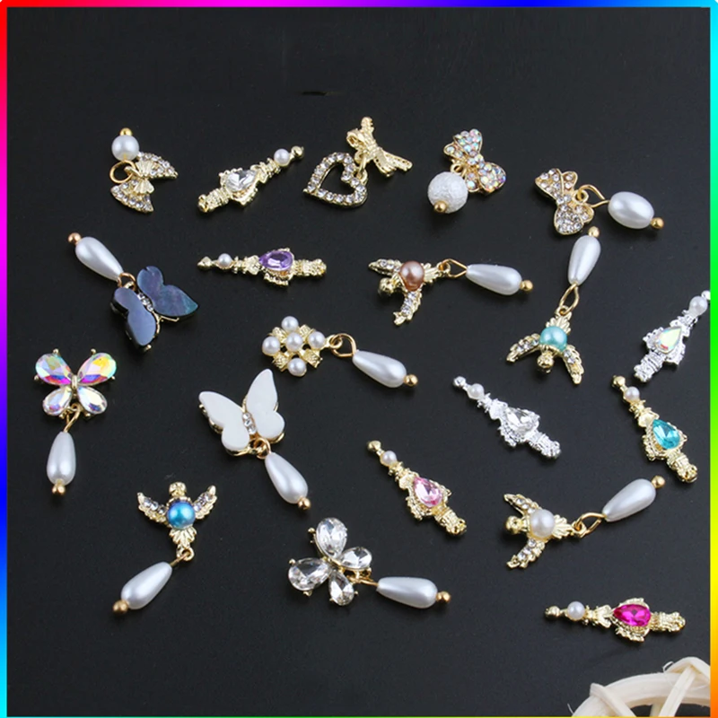 10 шт. Ангел Висячие Подвески для ногтей 3D сердце бабочка жемчуг к...