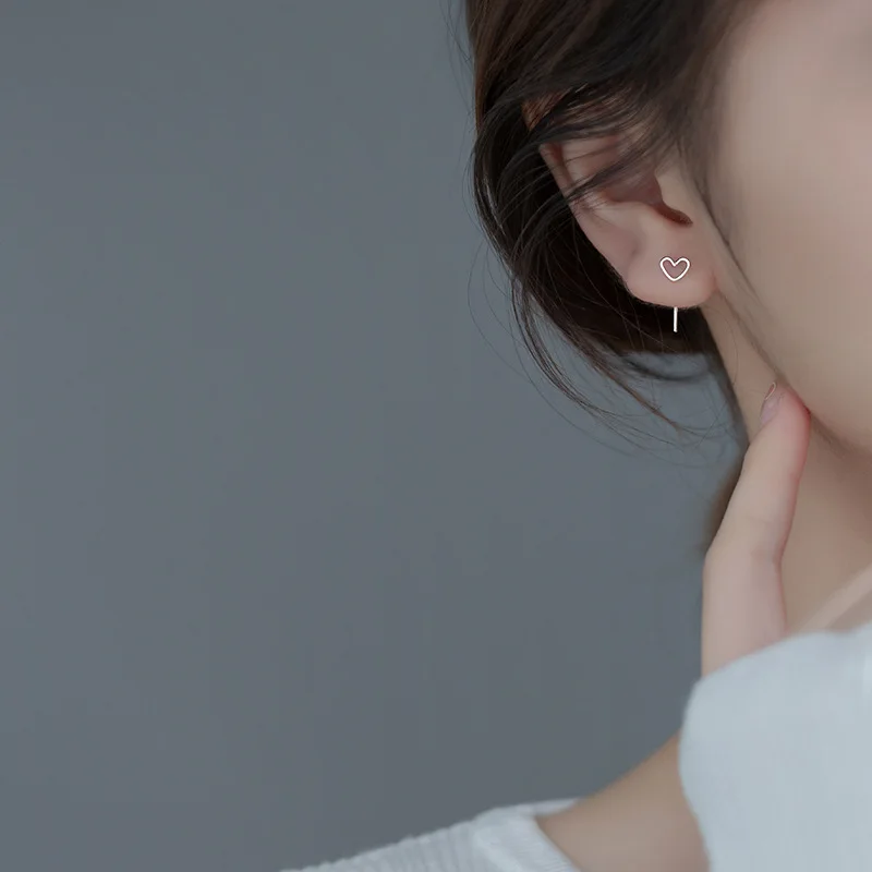 Серьги-Крючки женские из серебра 925 пробы с полым сердцем, минимал...