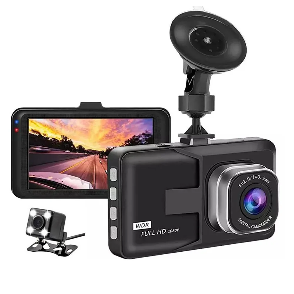 3-дюймовый видеорегистратор заднего вида, видеорегистратор с картой вождения для автомобиля, видеорегистратор, камера с солнечной батареей, циклической записью, ночным широким углом, Full HD 1080P