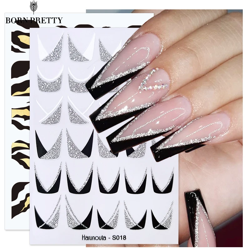 BORN PRETTY светоотражающий Блестящий 3D наклейки для ногтей красочные французские линии абстрактные наклейки для лица бабочки наклейки для украшения ногтей