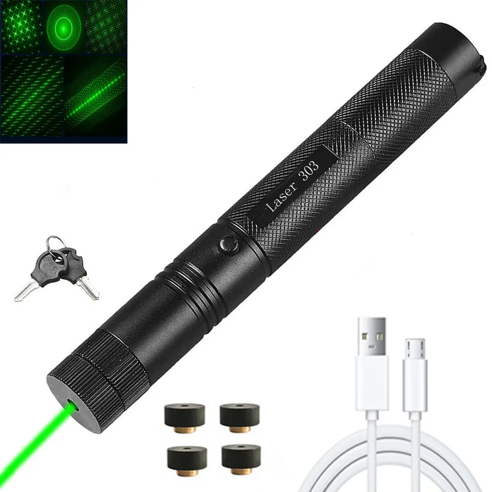 Тактическая лазерная указка, высокомощная USB перезаряжаемая ручка, лазерный фонарик, зеленыйкрасный303, прицел, указка с регулируемым фокусом