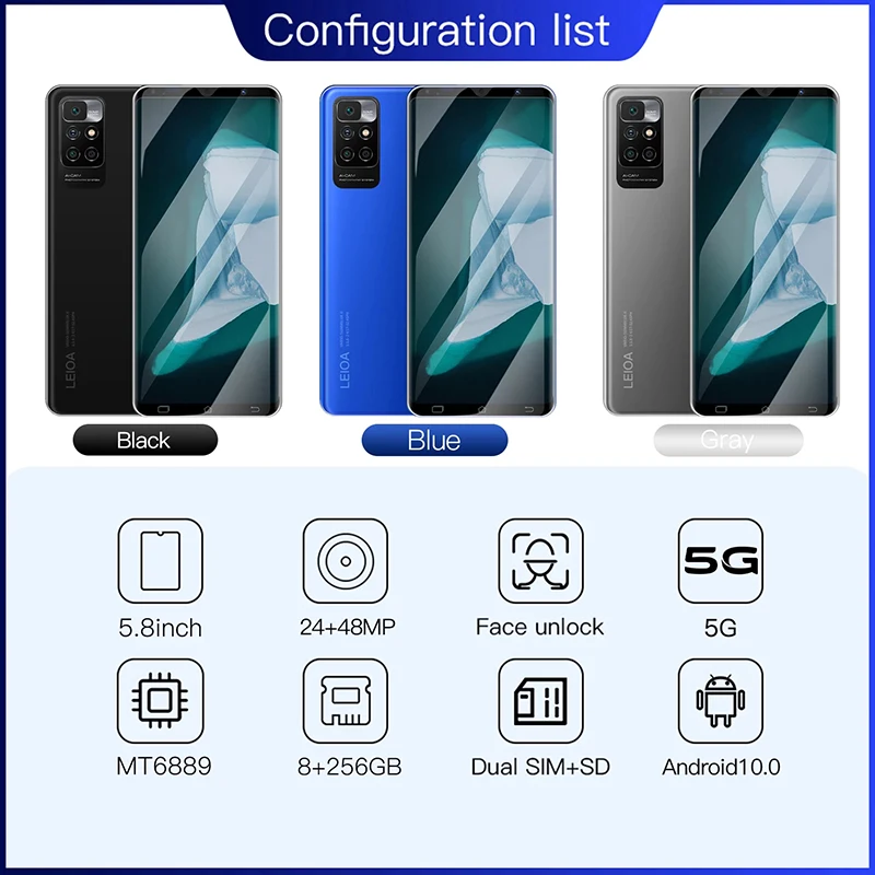 Смартфон, 8 ГБ, 256 ГБ, Android 10, камера 48 МП, 5000 мАч