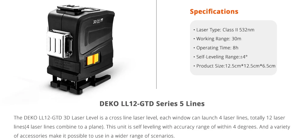 Лазерный уровень DEKO LL5, самонивелирующийся строительный нивелир ...
