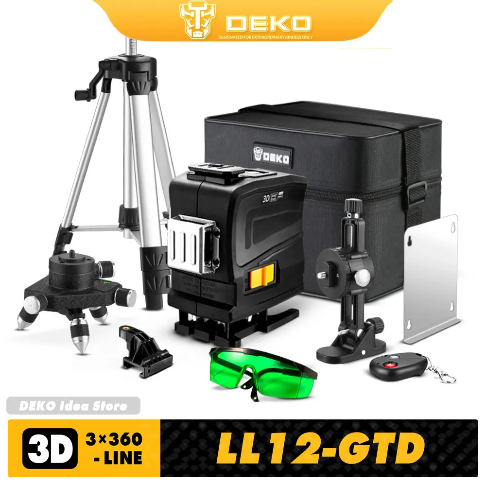 Лазерный уровень DEKO HV-LL12 12 линий, 3D самовыравнивающийся, 360...