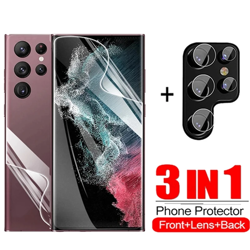 Гидрогелевая пленка 3 в 1 для Samsung S22, Ультрамягкая Защитная пленка для переднего и заднего экрана samsung s 22, s22 plus, s22ultra, пленка для объектива камеры