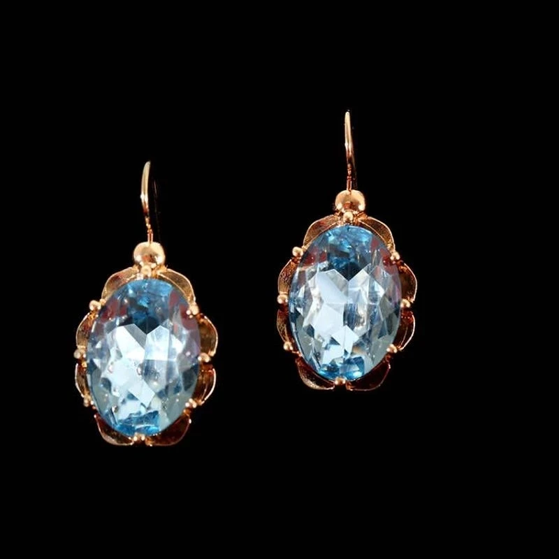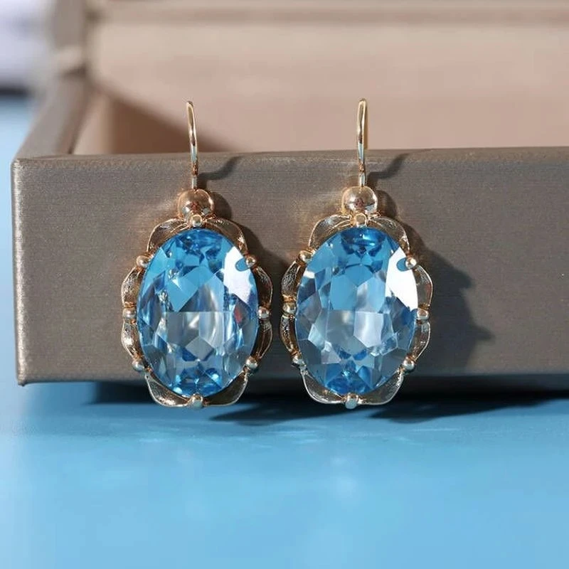 Женские серьги-подвески из 18-каратного желтого золота с голубыми б...