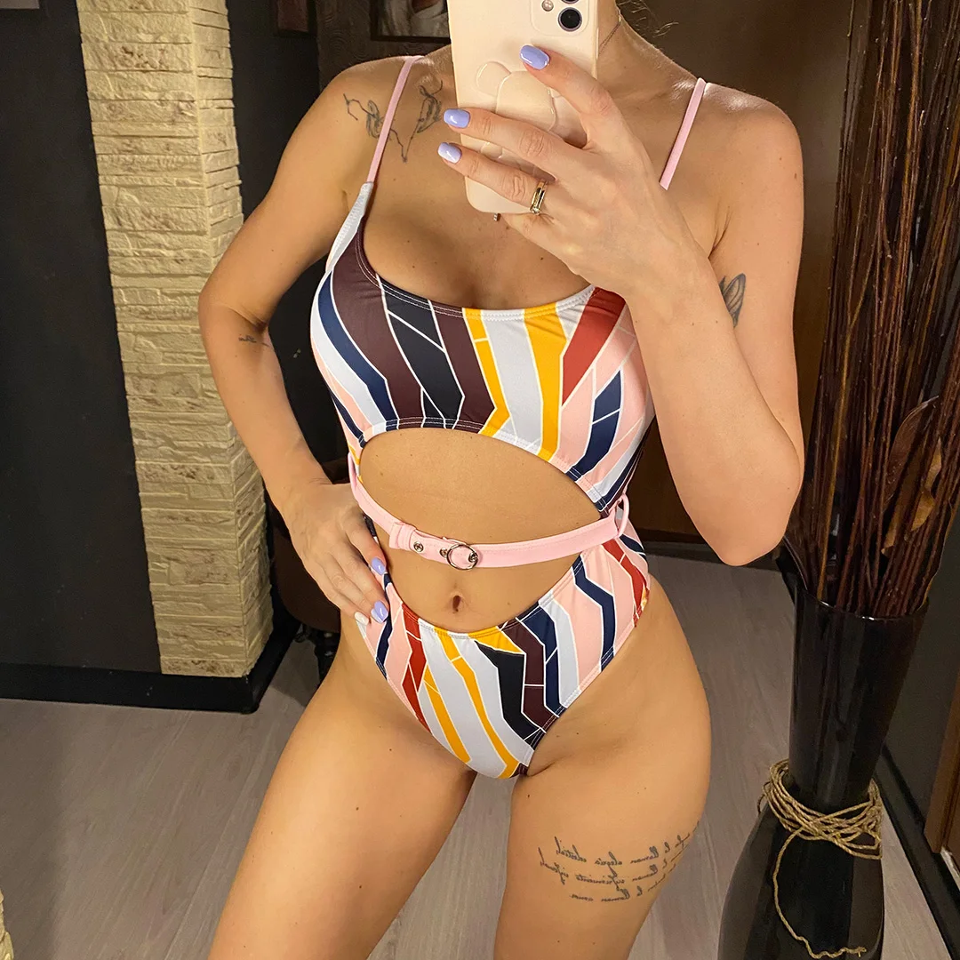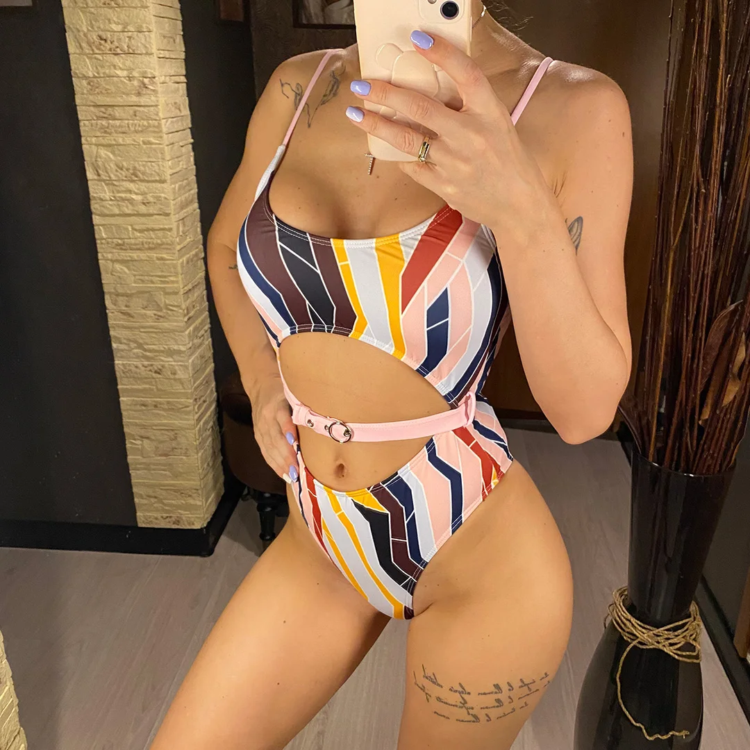 2021 сексуальный цельный купальный костюм с принтом и вырезами на ж...