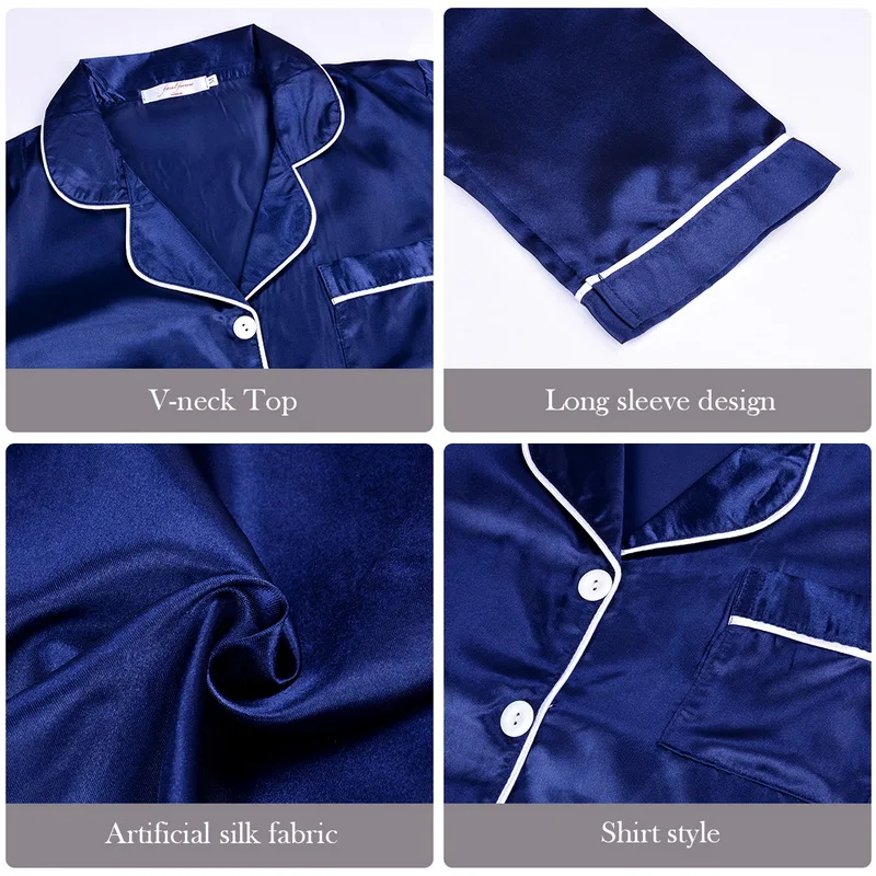 Комплект пижамный женский атласный из 2 предметов, рубашка с лацканами и длинными рукавами из искусственного шелка, пикантная Ночная сорочка и штаны, домашняя одежда
