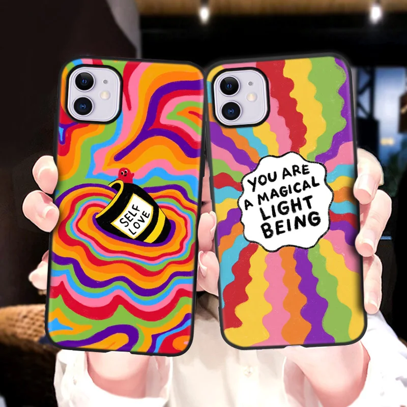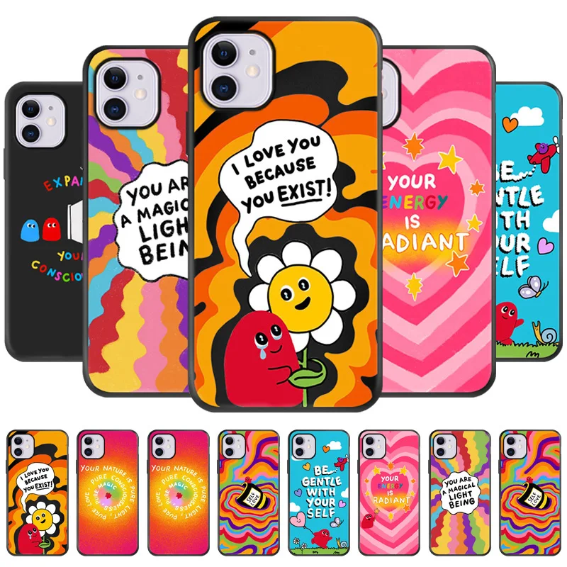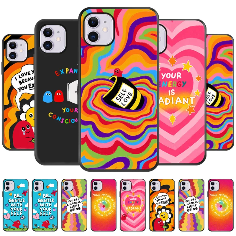 Чехол для Iphone 11, чехол для iPhone 13, 12 Pro Max, 7, 8 plus, XR, XS Max, X, SE 2020, 6, 6s, 5, технические характеристики, 13, 12, Черная задняя крышка с радужными волнами