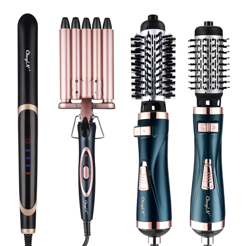 Профессиональный инфракрасный выпрямитель для волос с плоским утюгом, керамический 5 бочек для завивки, вращающийся волумайзер, Расческа с горячим воздухом, щетка для укладки