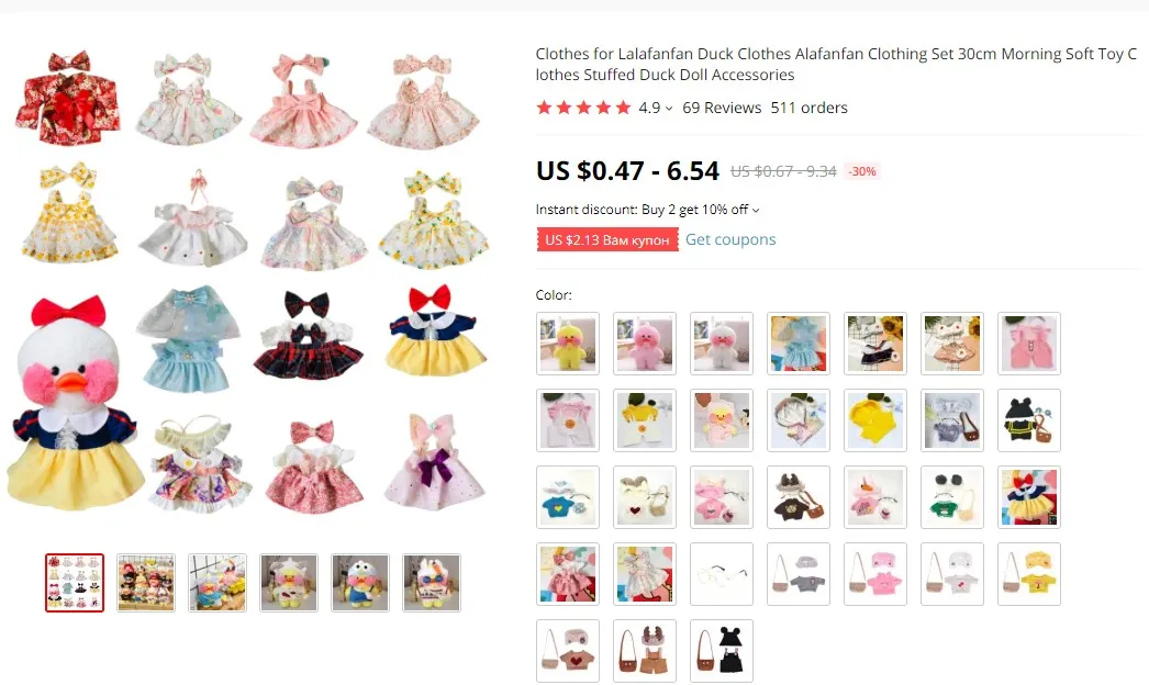 Симпатичная плюшевая игрушка лалалафанан, кафе, миди, утка, плюшева...