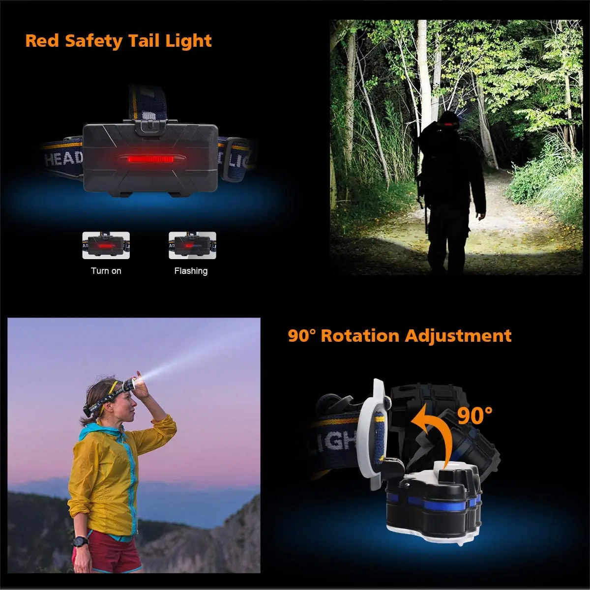 【 Светильник с регулировкой веса и 90 ° 】: регулируемый налобный фонарь на 90 ° позволяет фокусировать светильник именно там, где он вам нужен. Налобный фонарь обеспечивает отличную яркость, он идеально подходит для прогулок, бега, бега, Походов, Кемпинга, велоспорта, чтения, спеллинга, скалолазания и других видов активного отдыха.