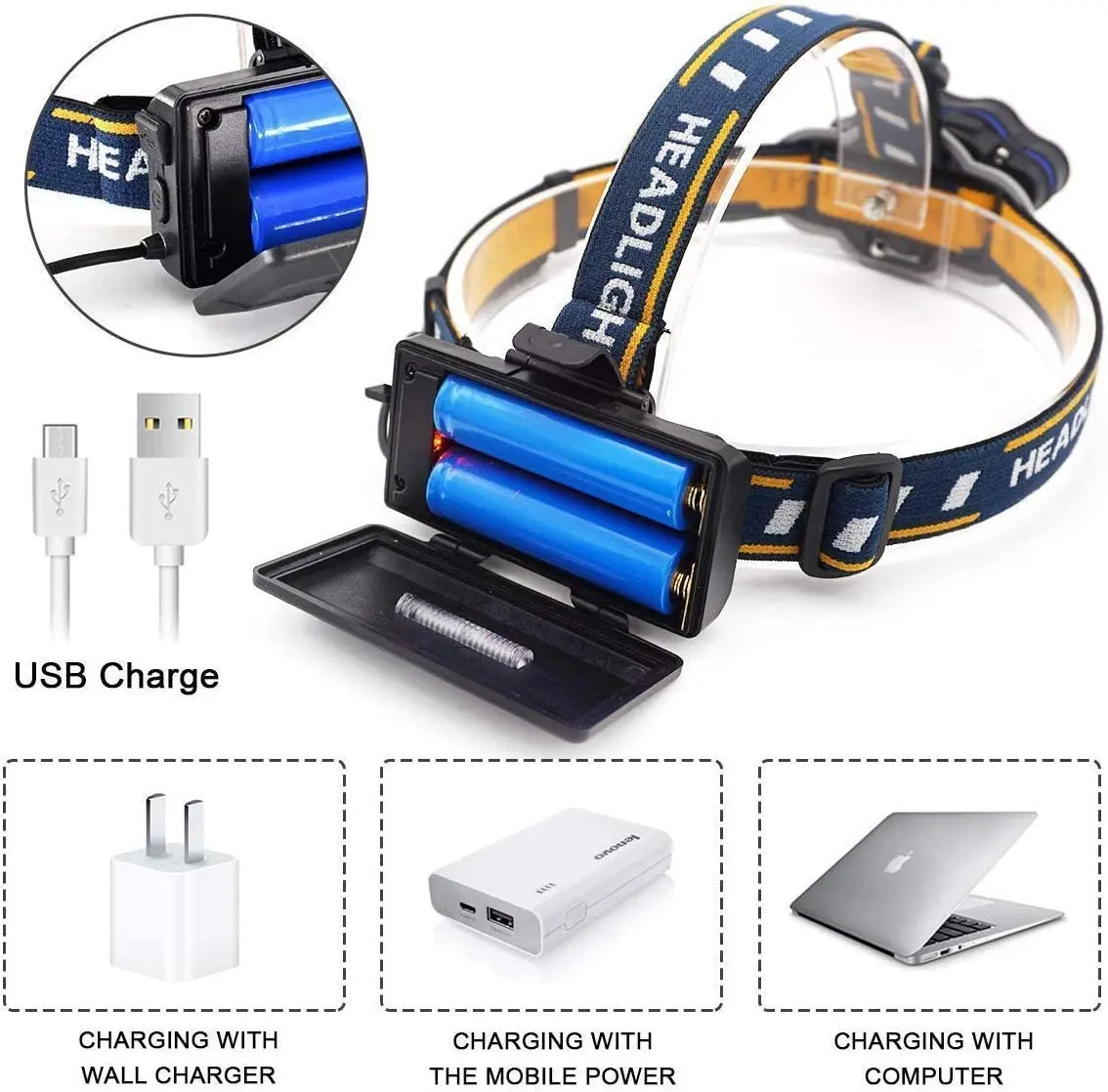 Суперъяркая светодиодный ная фара, USB перезаряжаемая фара, 8-скоростной режим, водонепроницаемая фара, освещение для кемпинга и рыбалки