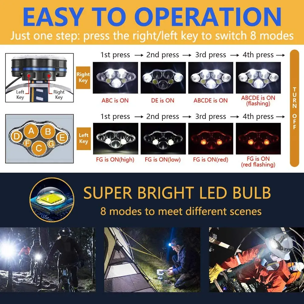 USB RechargeableHead Lamp, 8 Modes for Outdoor