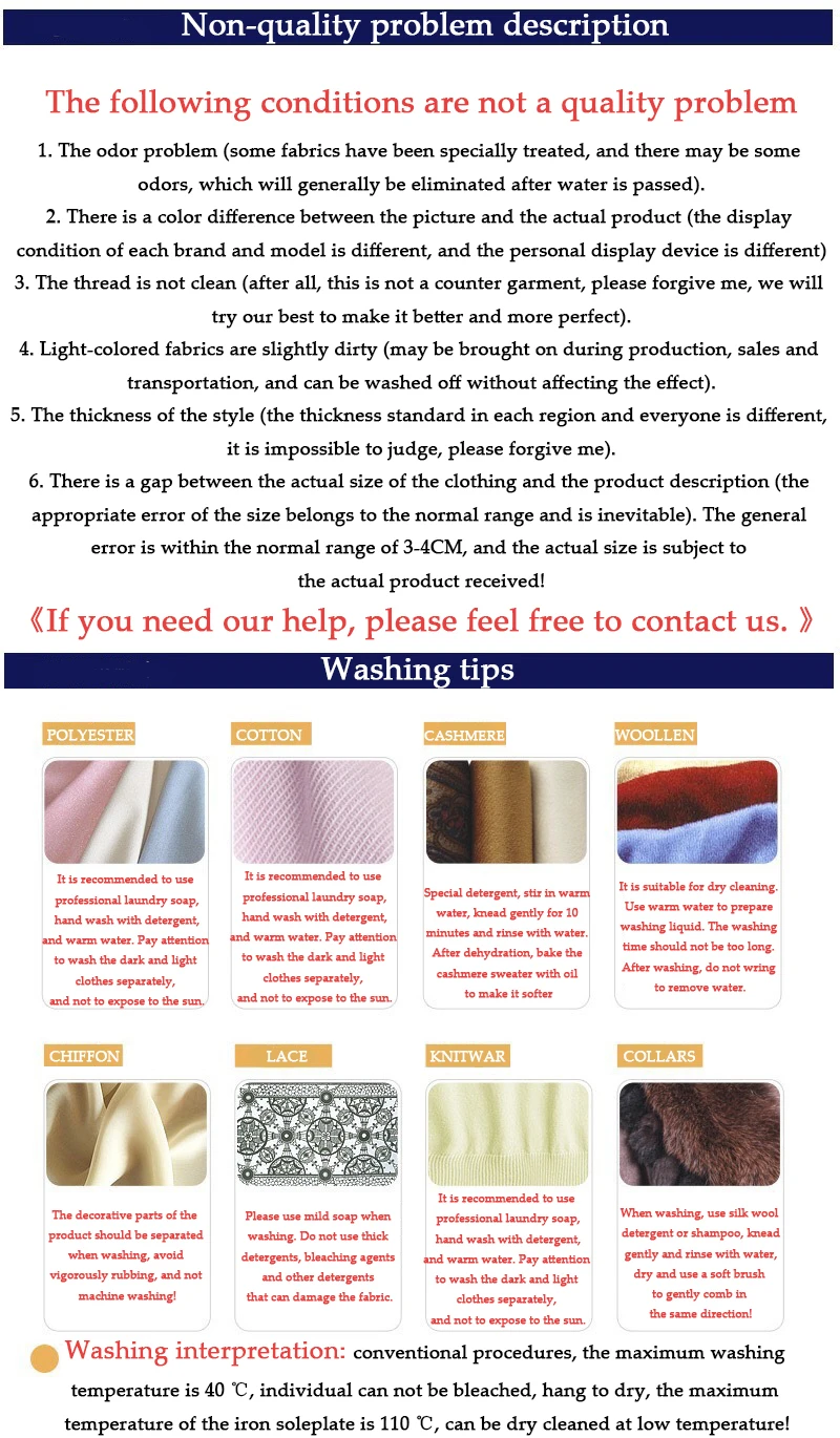 Следующие условия не являются проблемой качества1. Проблема с запахом (некоторые ткани были специально обработаны, и могут быть некоторые запахи, которые, как правило, будут устранены после того, как вода пройдет).2. Есть разница в цвете между картинкой и фактическим продуктом (состояние дисплея каждого бренда и модели отличается, а персональное устройство отображения отличается)3. Нить не чистая (в конце концов, это не Прилавок одежды, пожалуйста, простите меня, мы постараемся сделать все возможное, чтобы сделать ее лучше и более совершенной).4. Светильник из цветной ткани имеет грязный светильник (может быть использован во время производства, продажи и транспортировки и может быть смыт, не влияя на эффект).5. Толщина стиля (стандарт толщины в каждом регионе и все разные, невозможно оценить, пожалуйста, простите меня).6. Существует разрыв между фактическим размером одежды и описанием продукта (соответствующая Ошибка размера относится к нормальному диапазону и неизбежна). Общая погрешность в пределах 3-4 см, и фактический размер зависит от фактического полученного товара!《 Если вам нужна наша помощь, пожалуйста, свяжитесь с нами. 》
