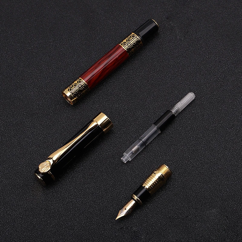 Высокое Качество 530 Перьевая Ручка Золотая Резьба Красное Дерево Бизнес Новые Чернила Ручка Офис Школьные Принадлежности Канцелярские Офисные Элегантные Ручки