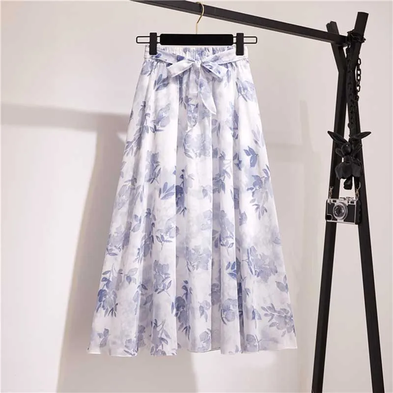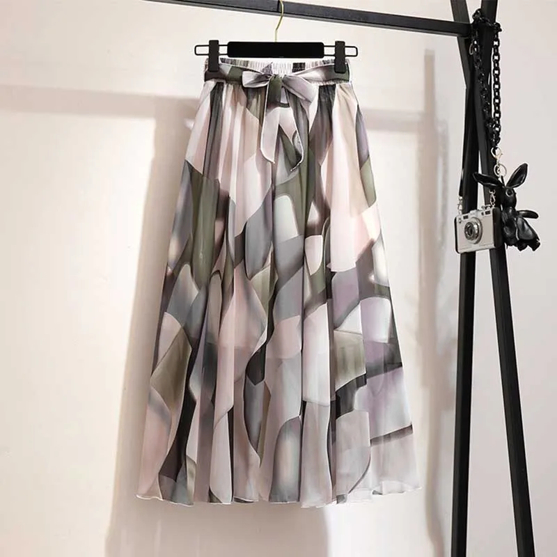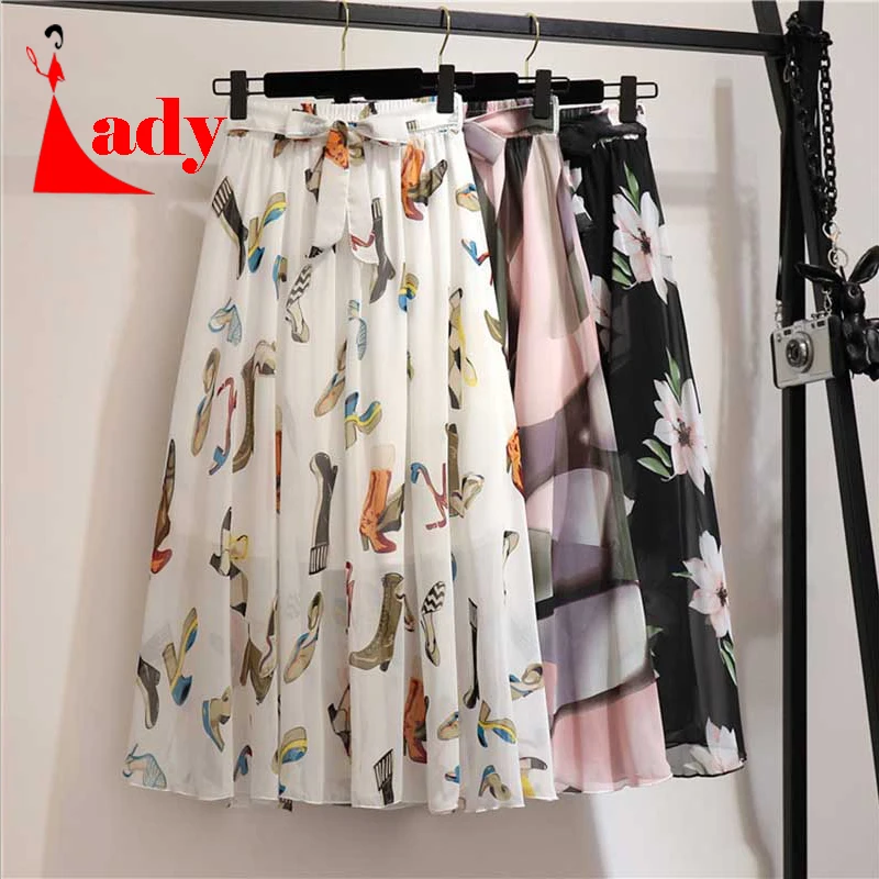 С высокой талией в стиле Бохо шикарный летний юбки женские шифоновы...