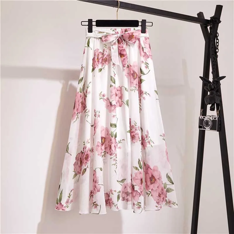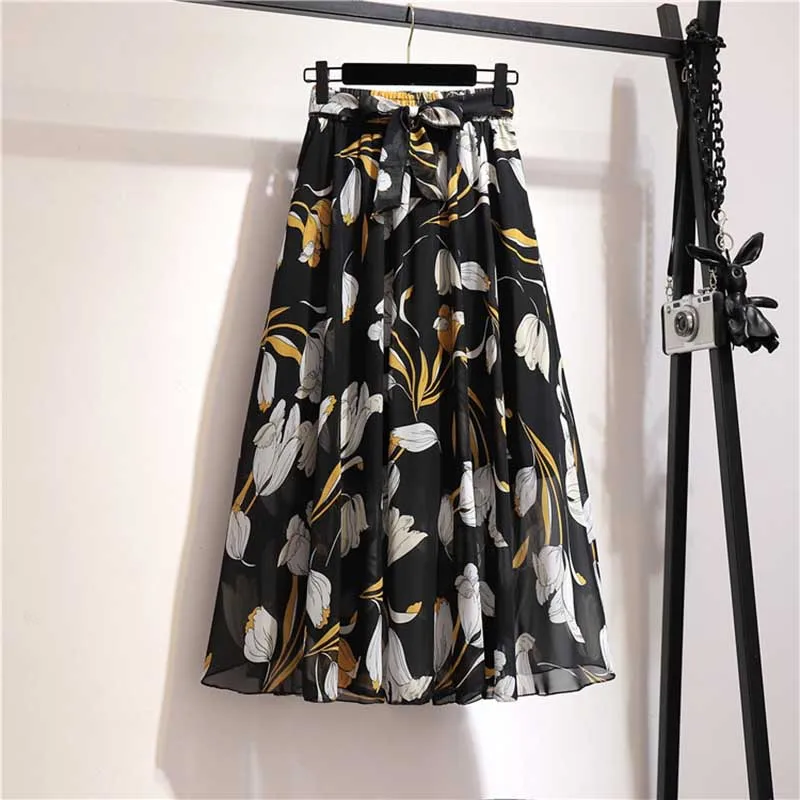 Длинная шифоновая юбка TFETTERS, с цветочным принтом, 22 цвета, вес...