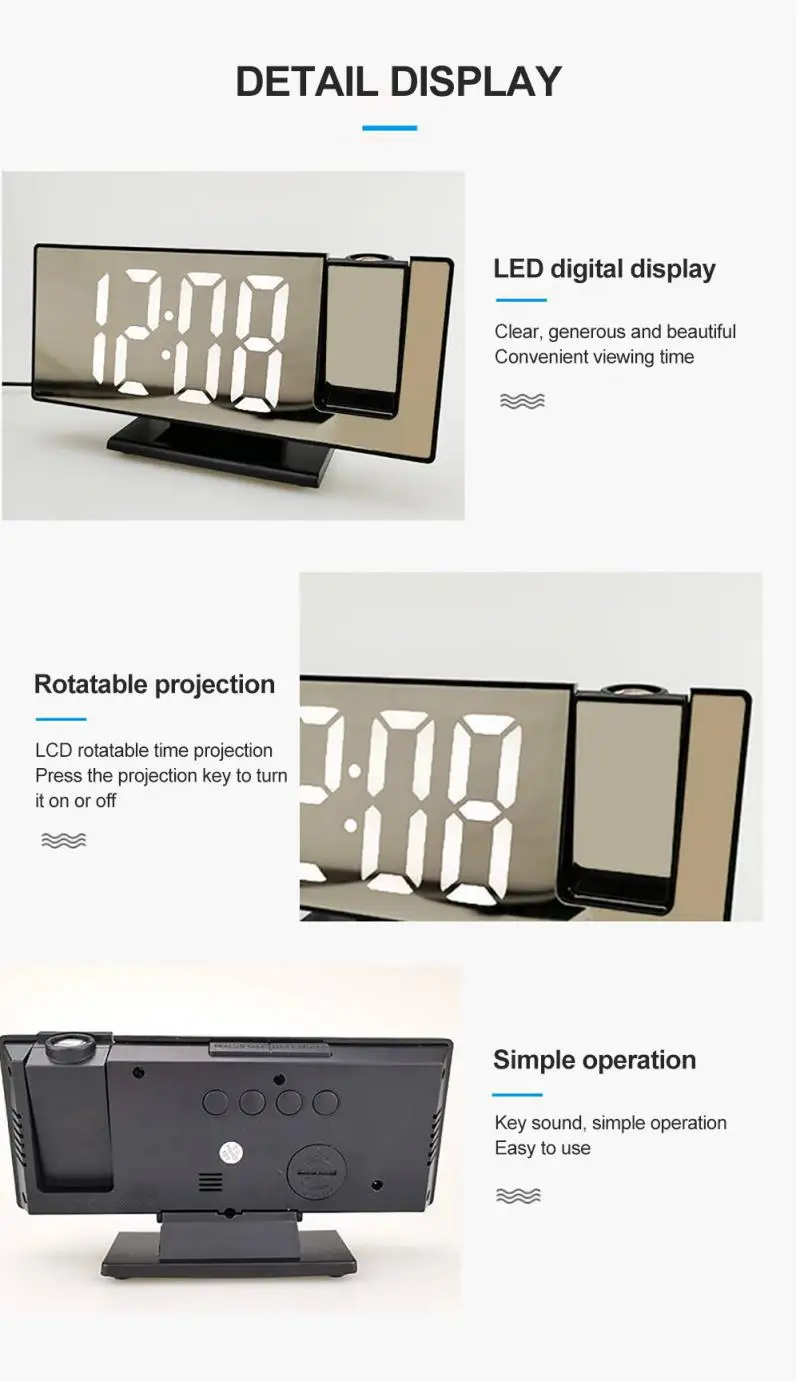 3) Светодиодный Проекция времени: проекция четкая и угол проекции можно регулировать; Нажмите клавишу проекции для включения или выключения;