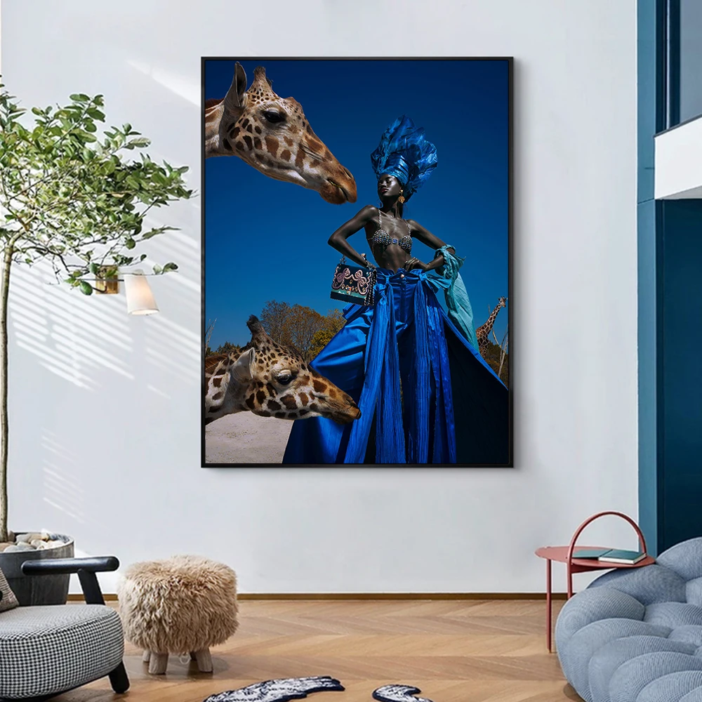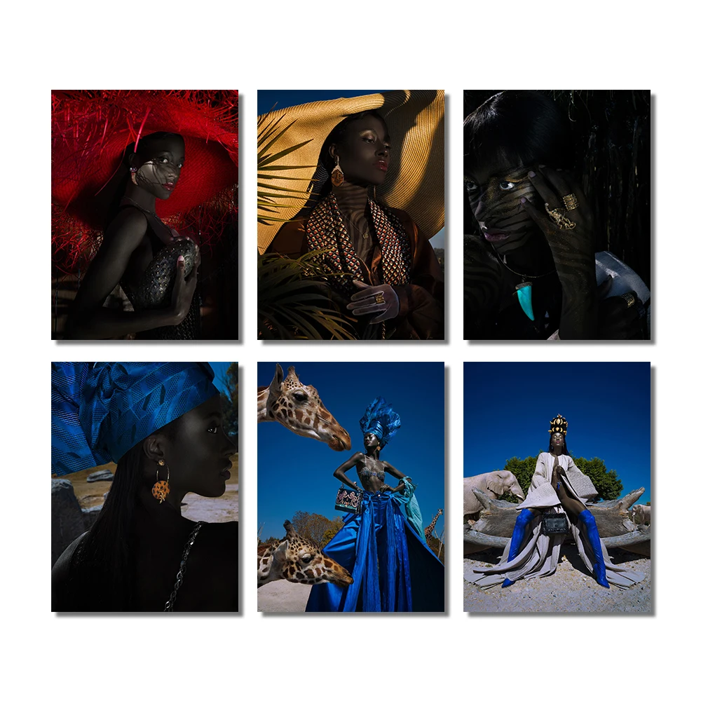 Модное настенное искусство в эстетике Африканской девушки, картины на холсте, современное художественное искусство, красочные фигуры, плакаты, картины, украшение для гостиной