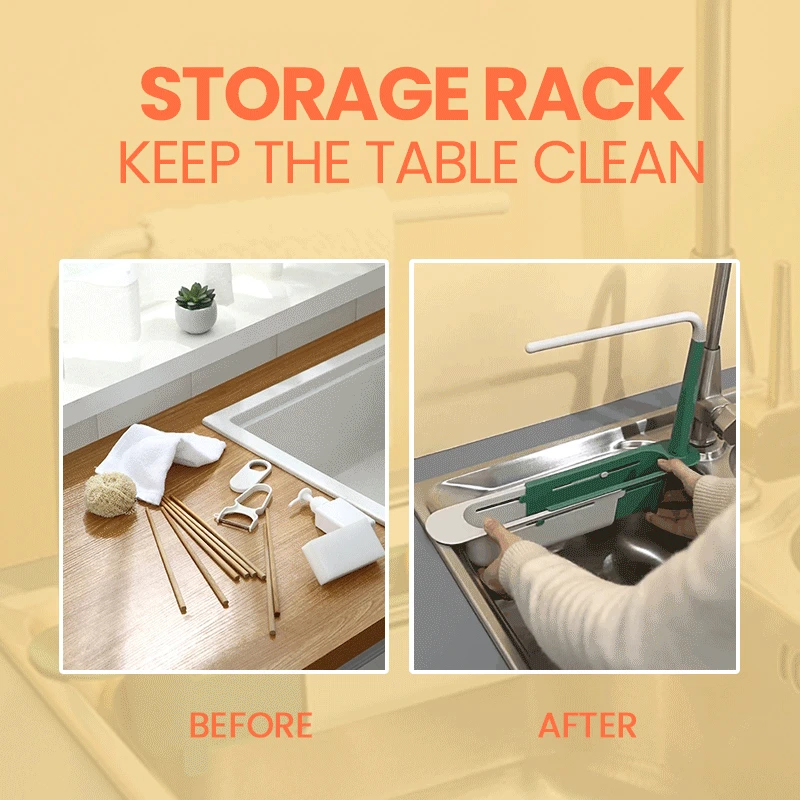Расширяемый стеллаж для сливной корзины из полипропиленового материалаХорошая несущая способность, отсутствие деформации, более стабильная и не трясется, Которые могут хранить больше продуктов сразу.