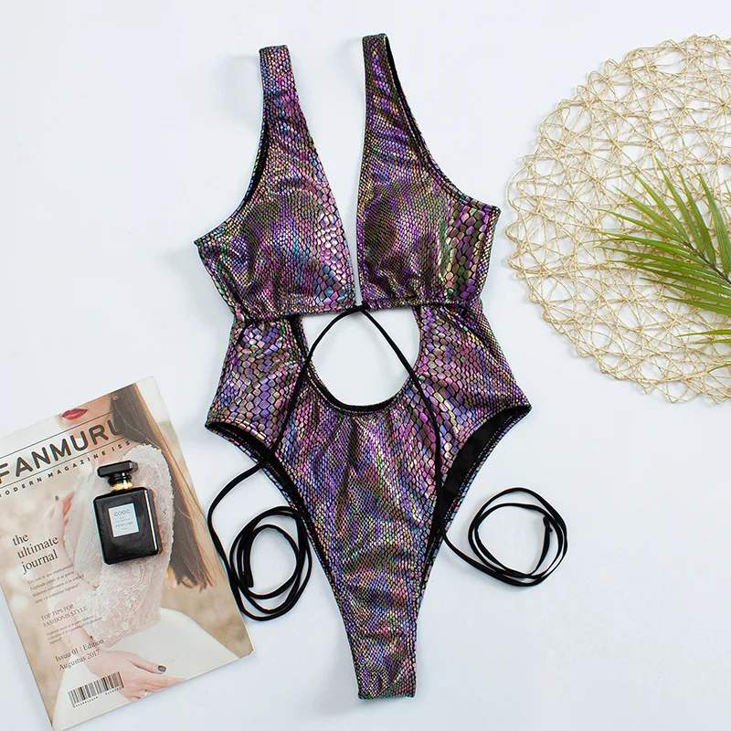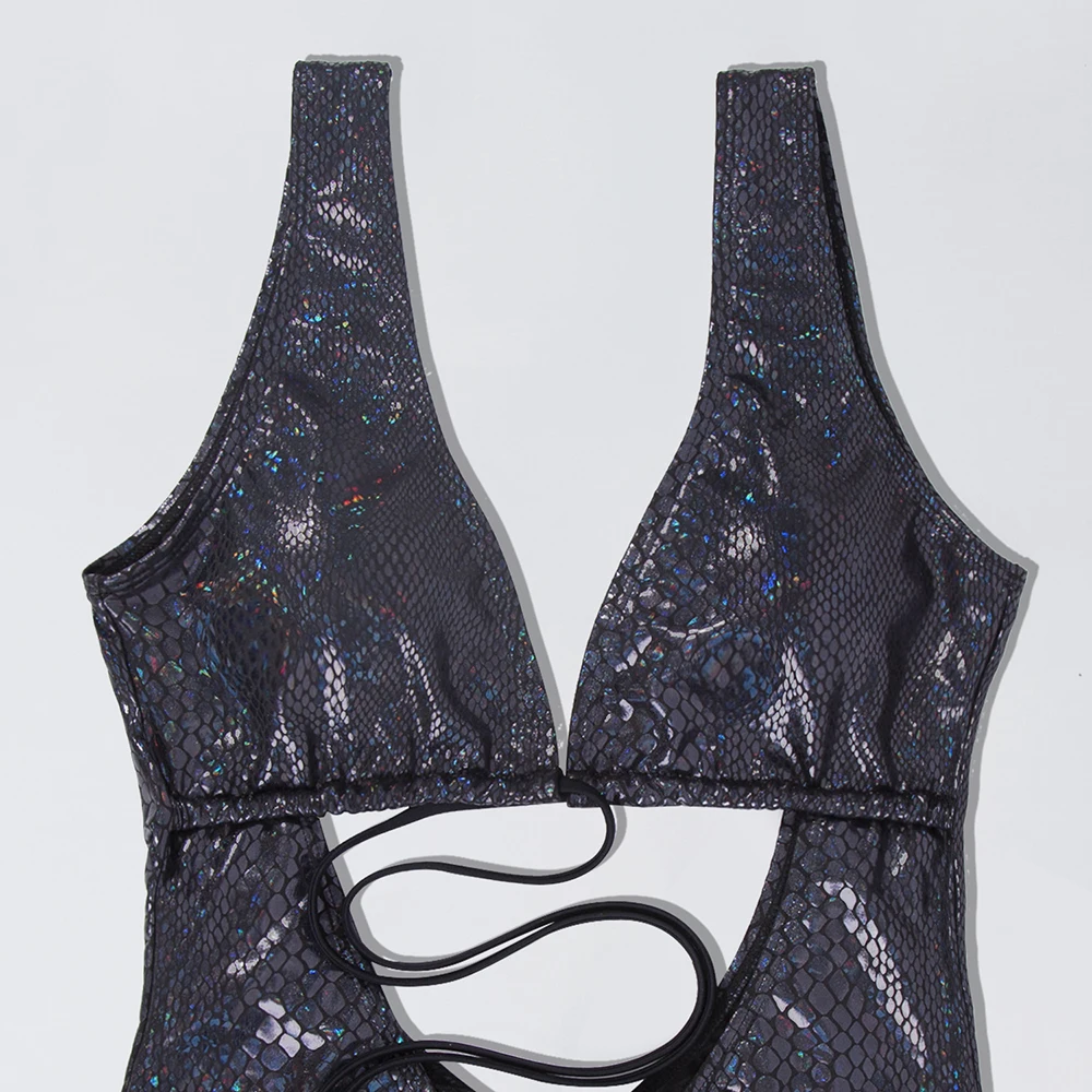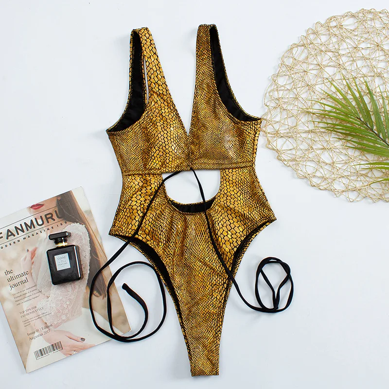 Блестящий слитный женский купальник со змеиным принтом, 2022