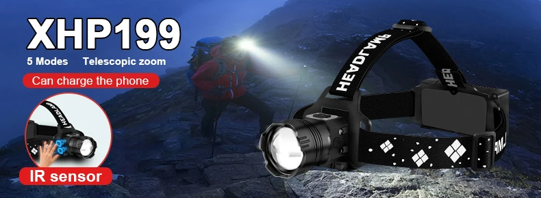 Фары используют XHP199 с ИК-режимом датчика. Вы можете освободить руки, когда заняты, это профессиональная высококачественная фара, подходящая для любителей ночного спорта, таких как рыбалка и кемпинг. Это также идеальный наружный налобный фонарь для ночного чтения, путешествий на открытом воздухе, приключений и длительных поездок.