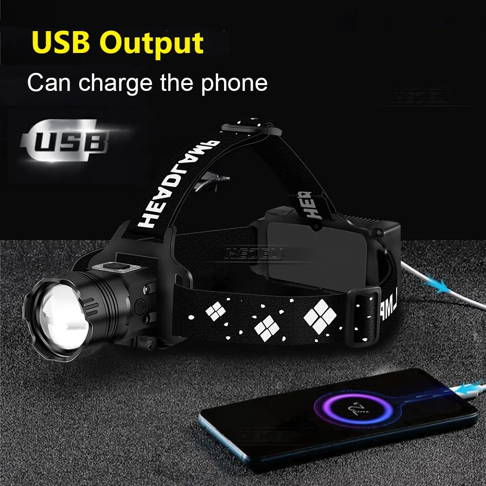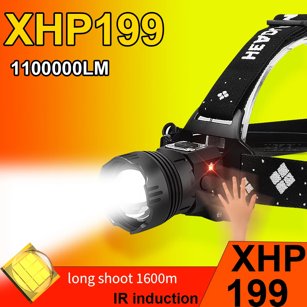 Супер мощный яркий светодиодный налобный фонарь XHP199, перезаряжаемый налобный фонарь XHP160, налобный фонарь высокой мощности, налобный фонарь 18650, налобный фонарь для рыбалки