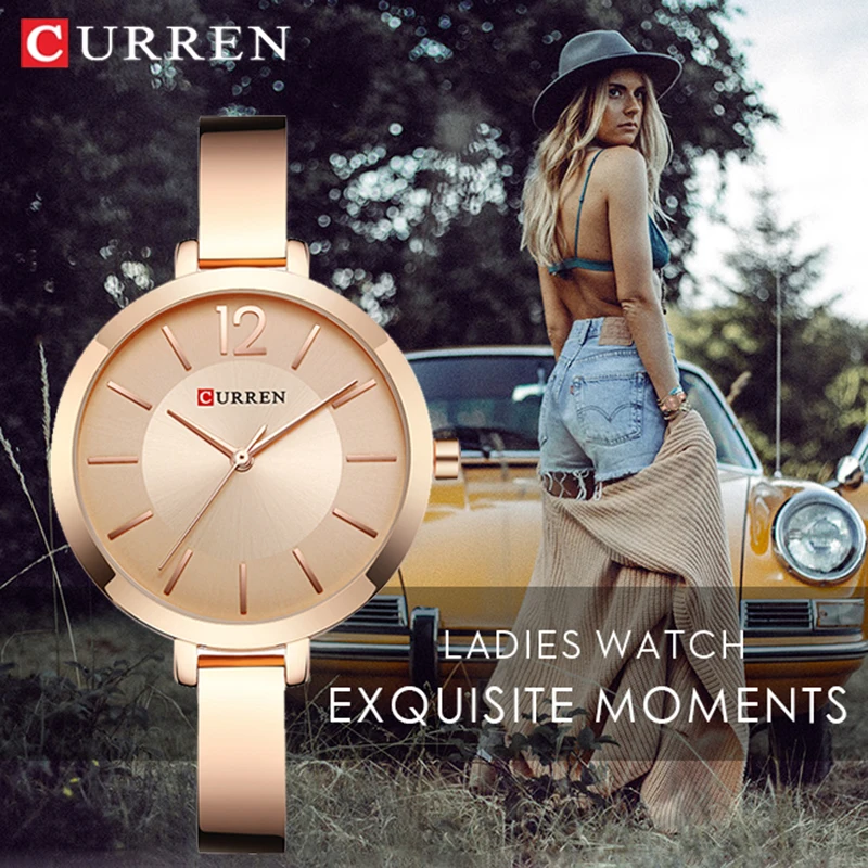 CURREN Модные Золотые женские часы из нержавеющей стали ультра тонк...