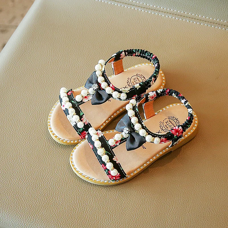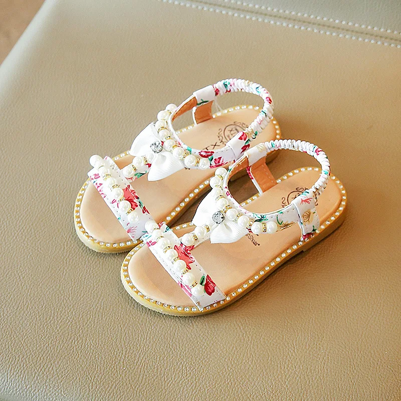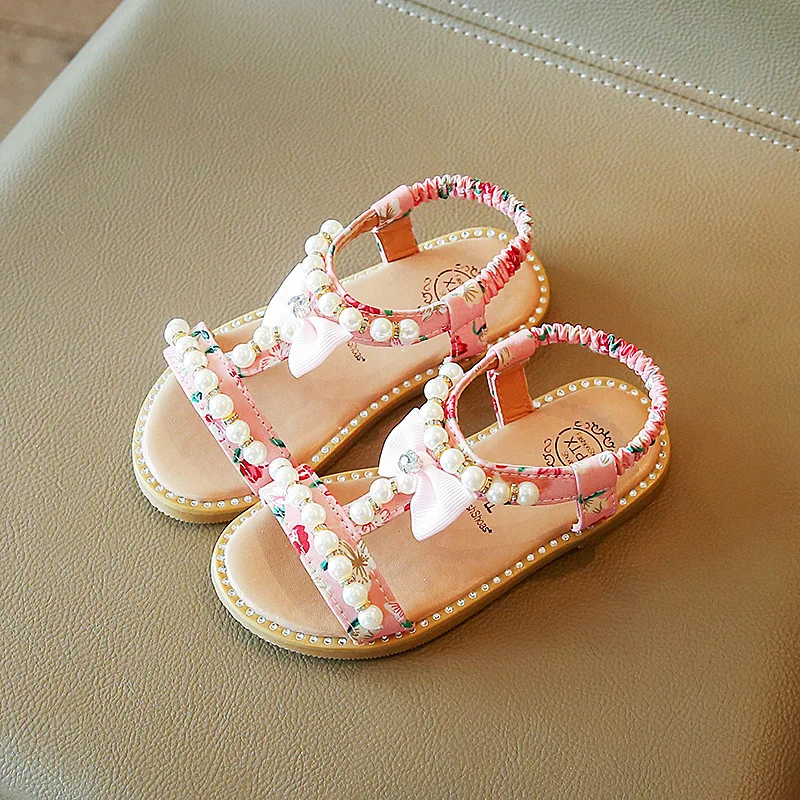 Сандалии для маленьких девочек, Детские босоножки в Корейском стиле, туфли принцессы с открытым носком и жемчугом, маленькие розовые, для детей среднего возраста, лето