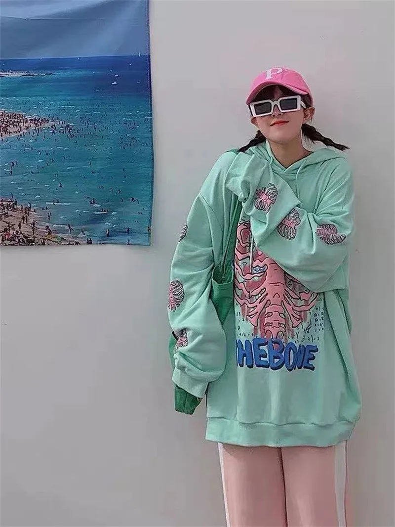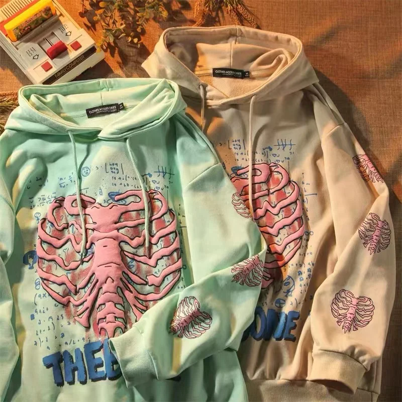 Худи женское в готическом стиле с принтом черепа, на весну и осень