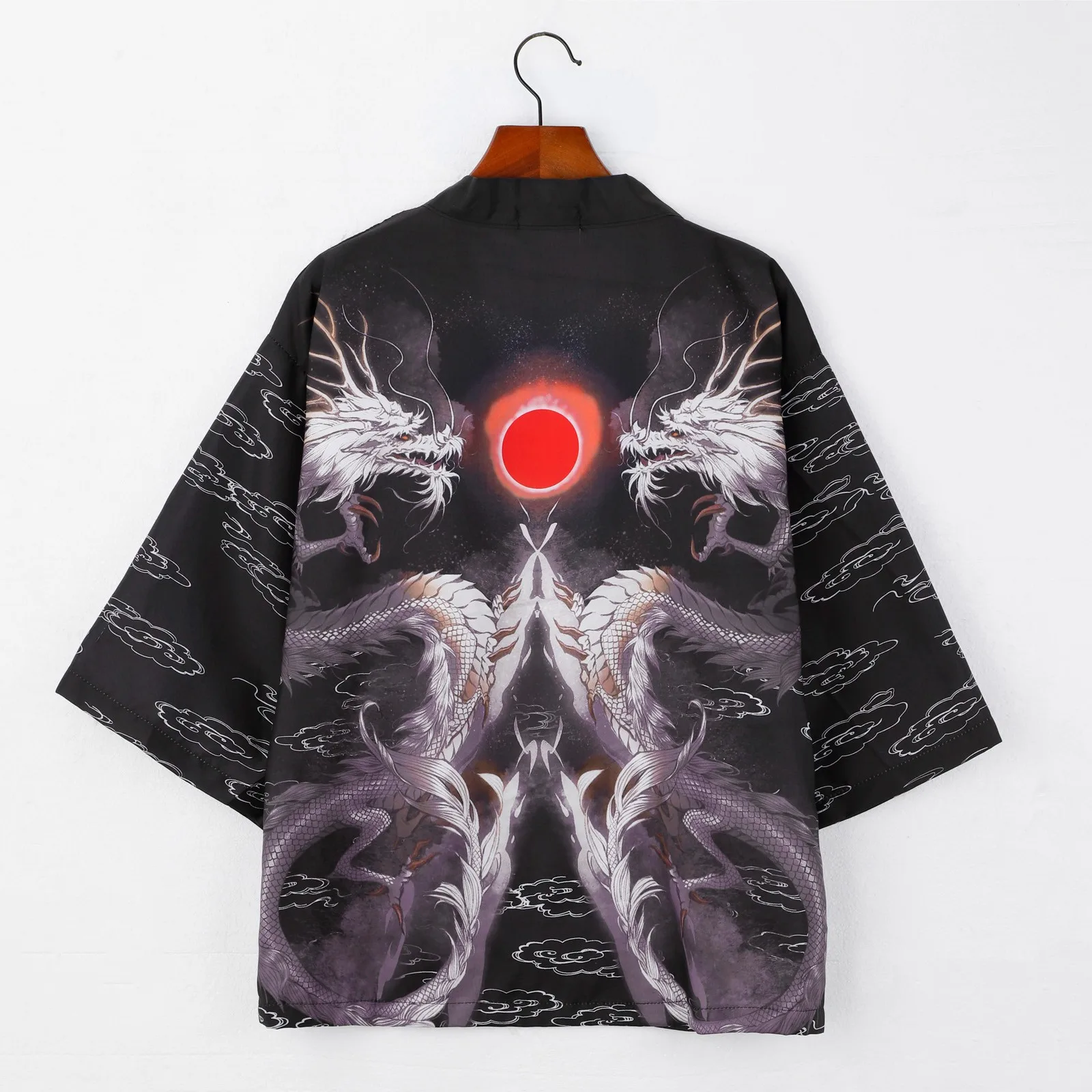 Кардиган-кимоно мужской с принтом, рубашка с популярным рисунком, шикарный халат, верхняя одежда, японское пальто, весна-осень