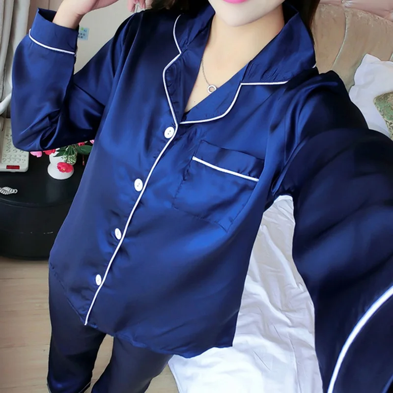Комплект пижамный женский атласный из 2 предметов, рубашка с лацканами и длинными рукавами из искусственного шелка, пикантная Ночная сорочка и штаны, домашняя одежда