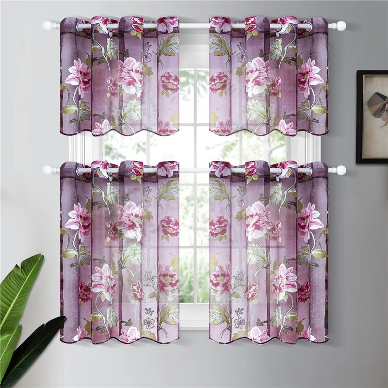 Короткие фотообои для гостиной фиолетовые прозрачные Шторы для кухни спальни кухни оконные занавески на заказ