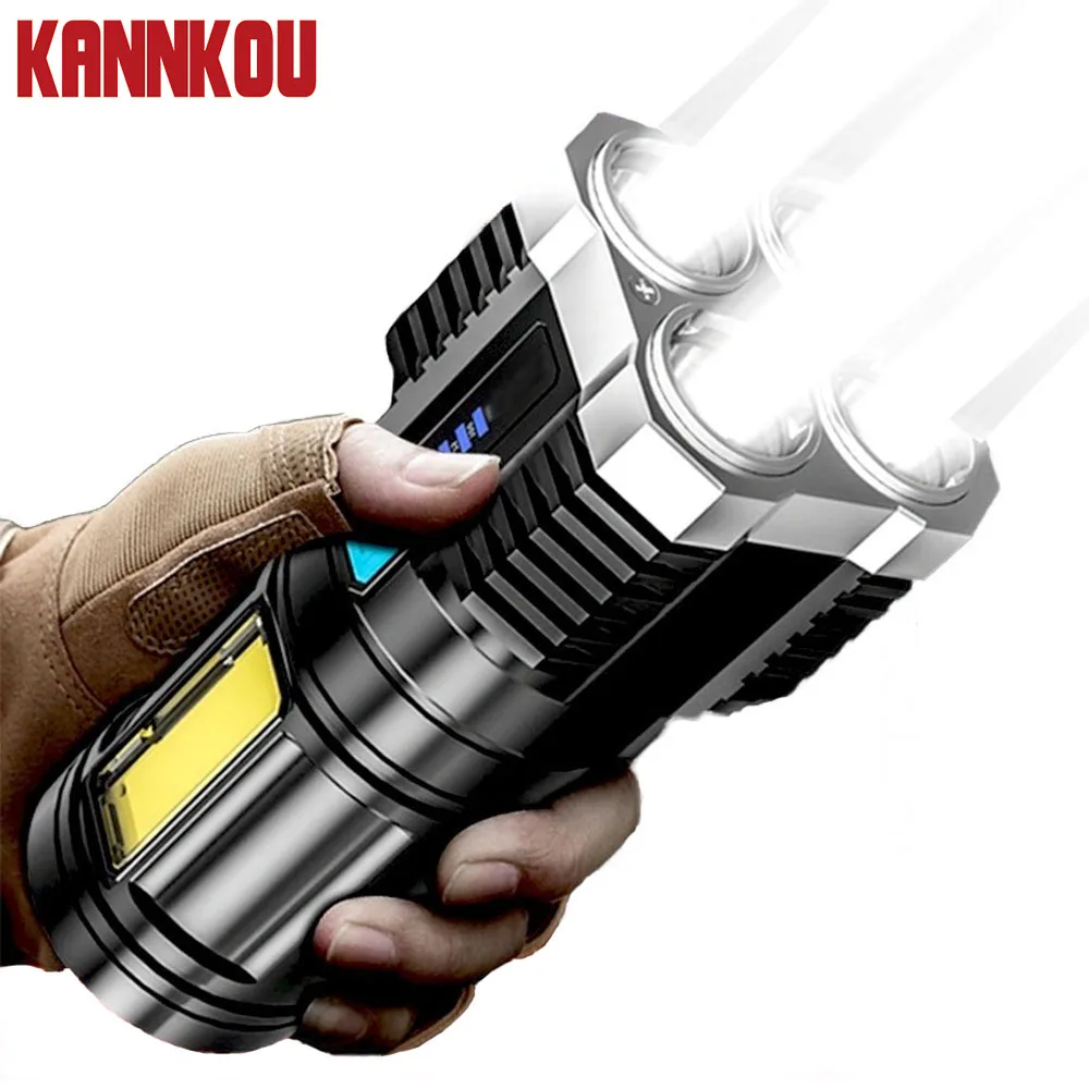 Наружный портативный фонарь KANNKOU, USB-зарядка, встроенный аккумулятор, дисплей мощности, 4-скоростной фонарь