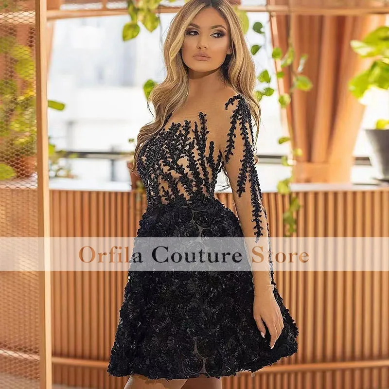Женское короткое черное платье с длинными рукавами, блестящими блестками, сексуальные женские платья для выпускного вечера, Короткие коктейльные платья из тюля