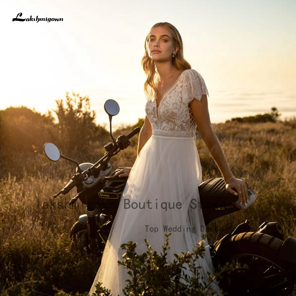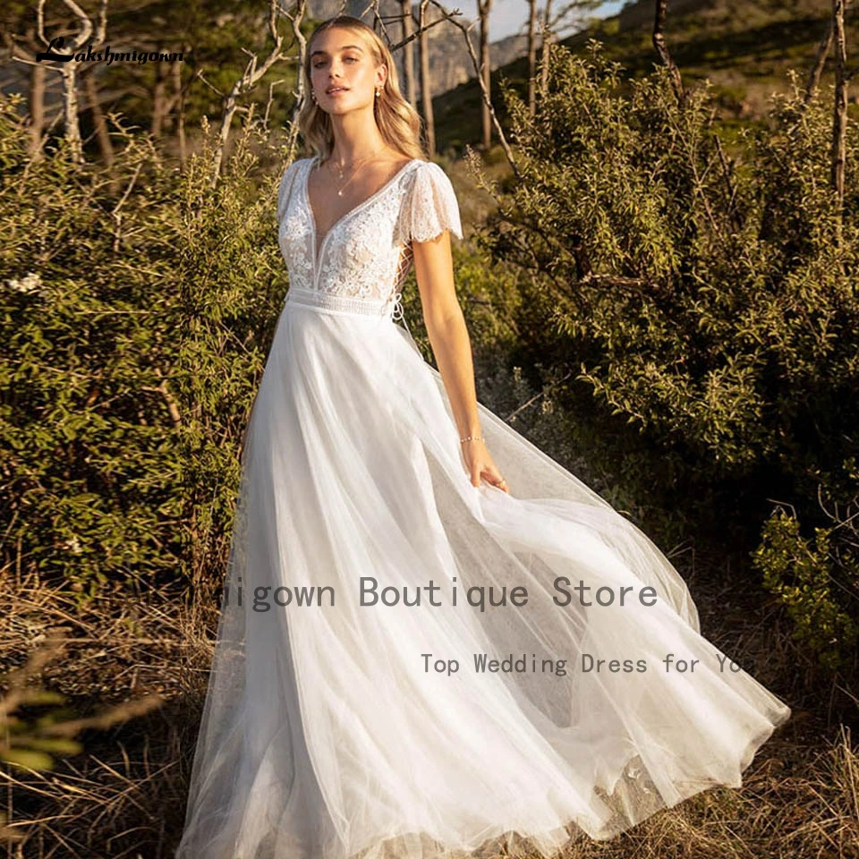 Lakshmigown пикантное женское свадебное платье в стиле бохо пляжное летнее 2022 Пышное Тюлевое длинное свадебное платье с открытой спиной кружевные рукава-кепки