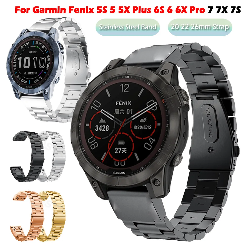 Металлический ремешок для смарт-часов Garmin Fenix 6S 6X 6 Pro 7S 7 7X 5S 5X 5 Plus, ремешки из нержавеющей стали для быстрого крепления, 20 22 26 мм