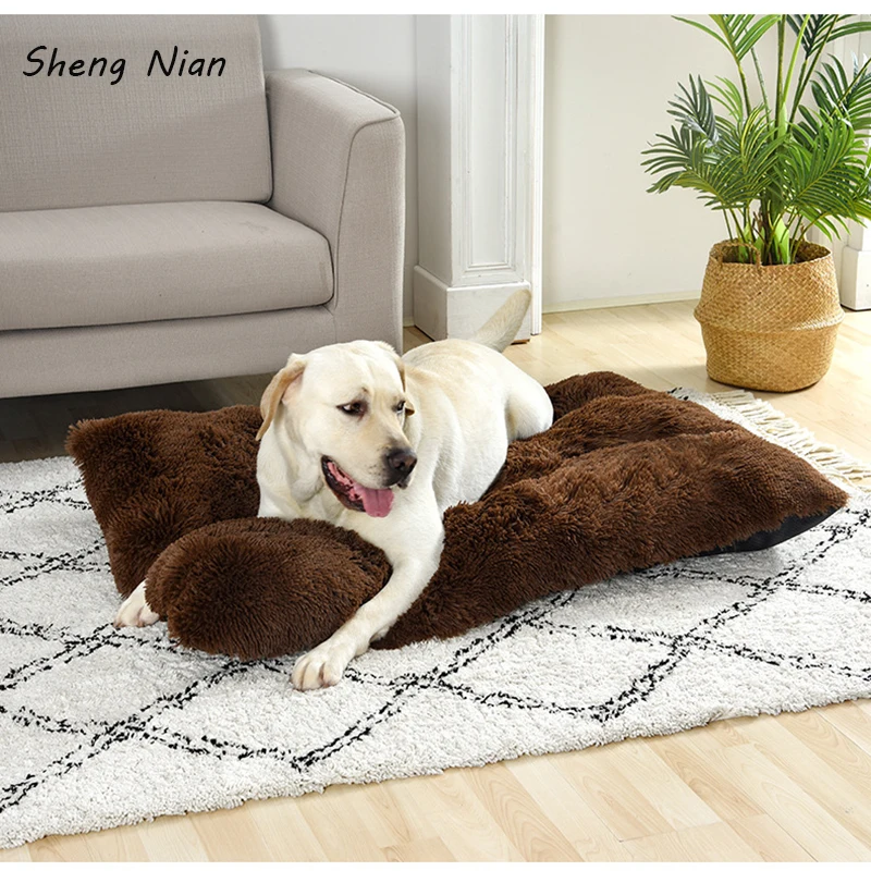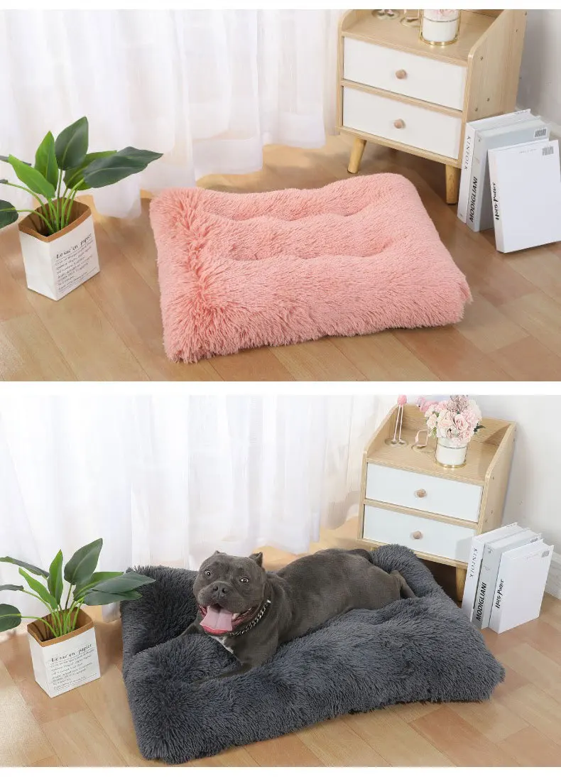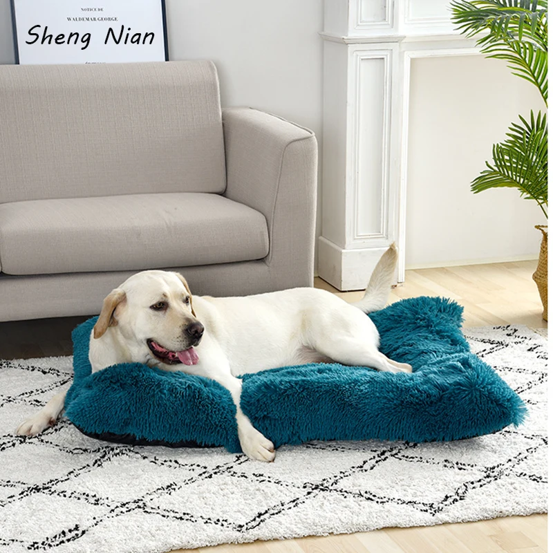 Роскошная квадратная кровать для собаки, длинная плюшевая кровать н...