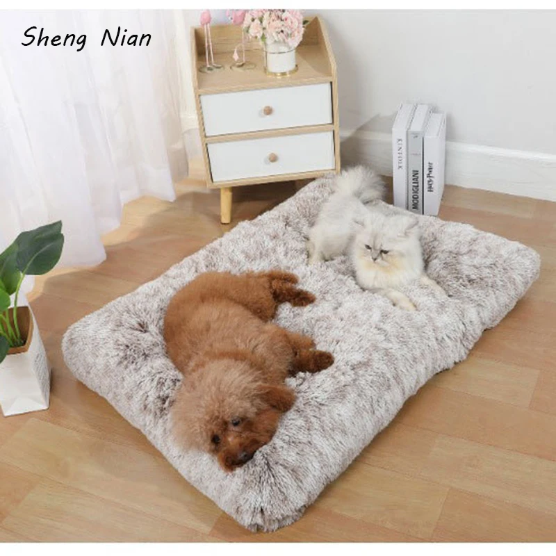Роскошный плюшевый матрас для домашних животных, длинная теплая кро...