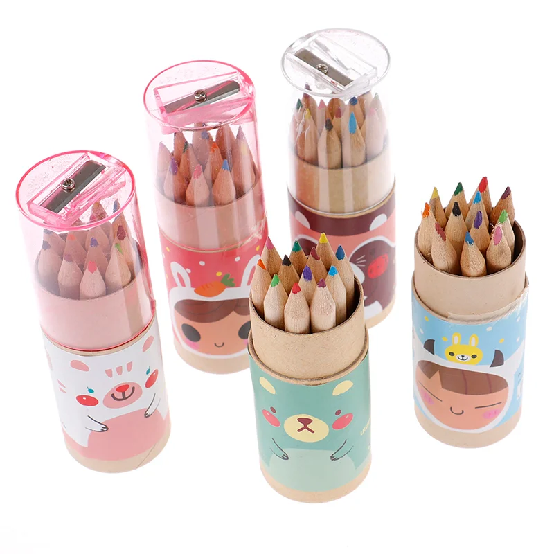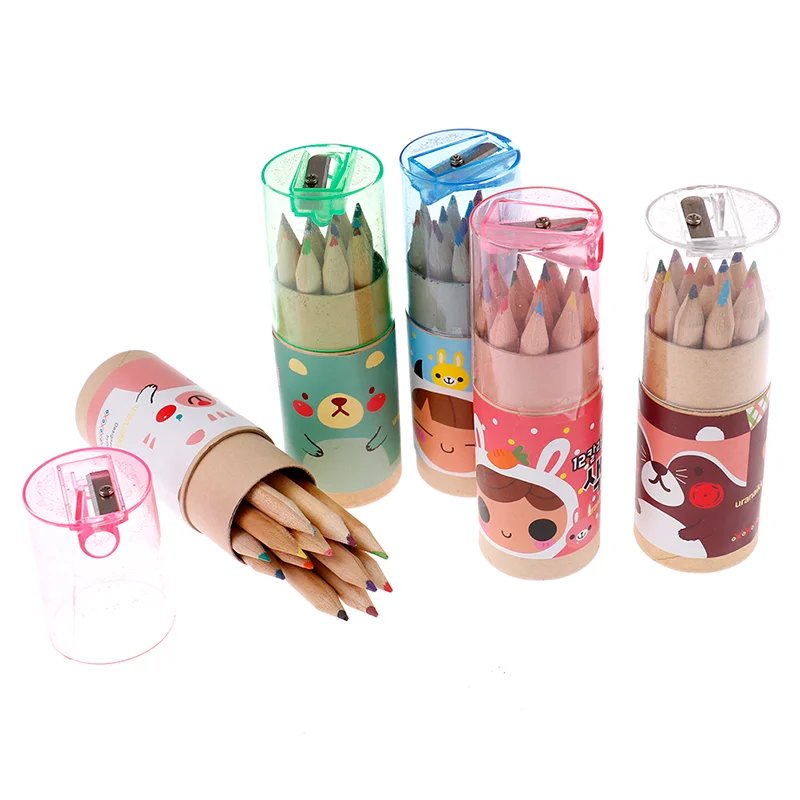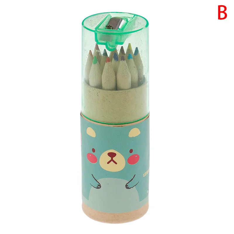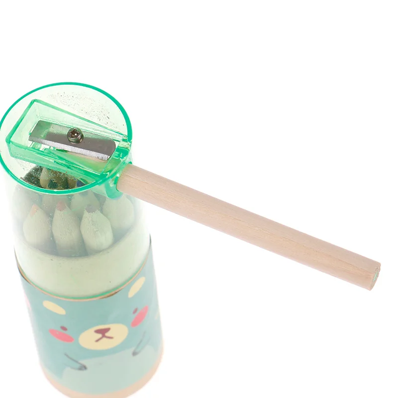 12 шт.лот цветной карандаш с заточивателем с милым медведем кавайны...