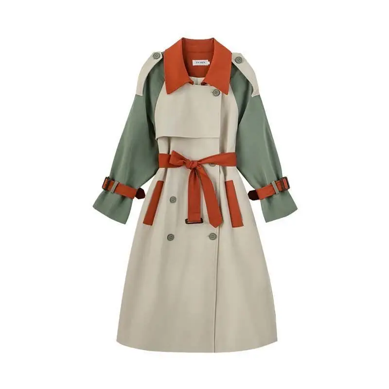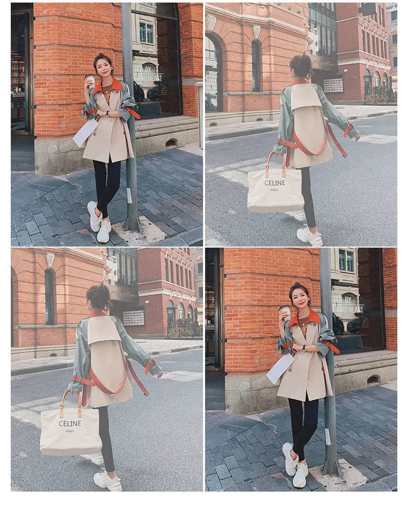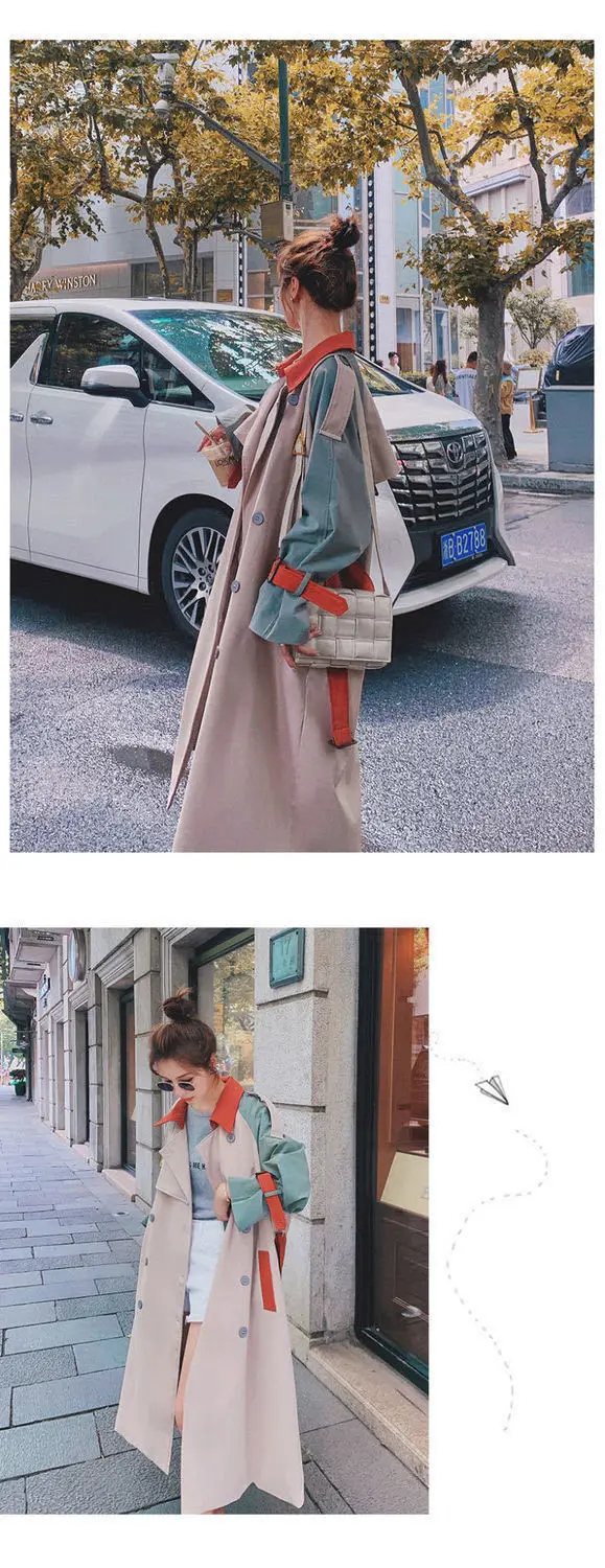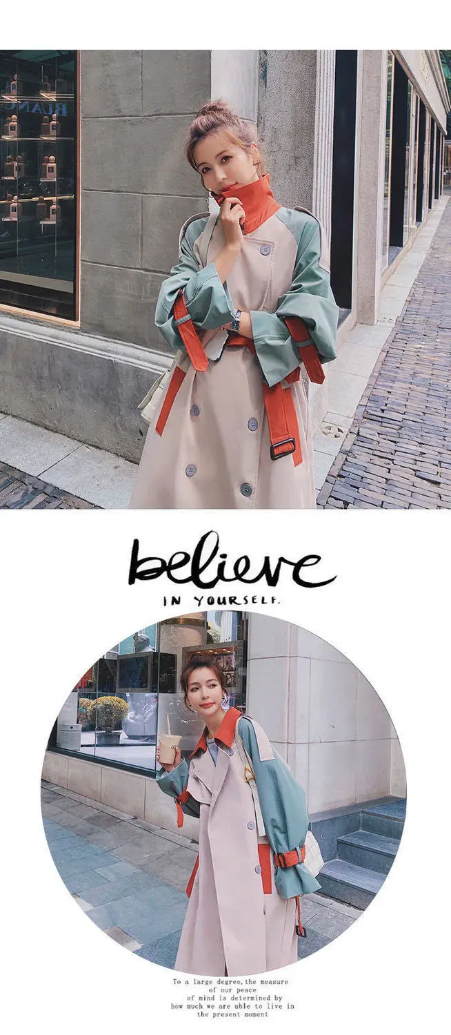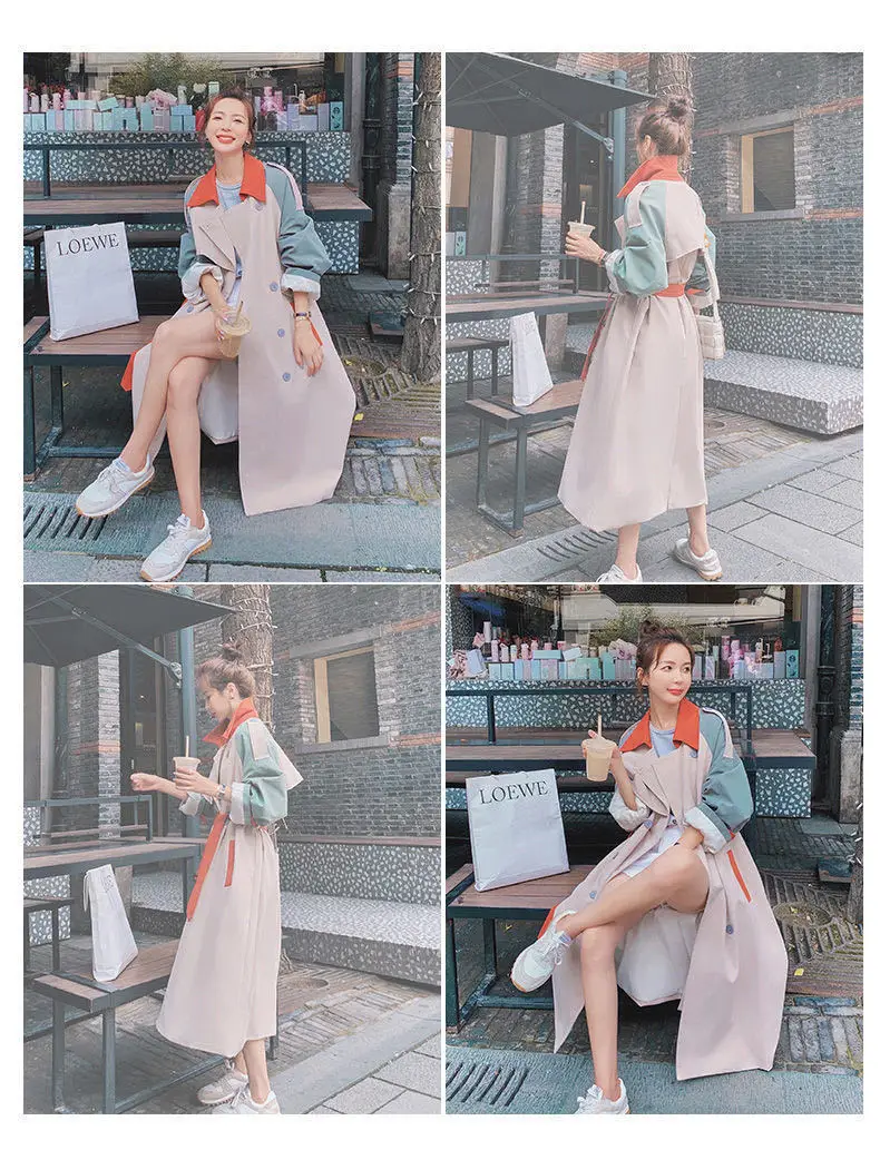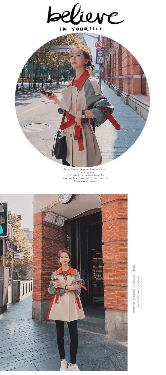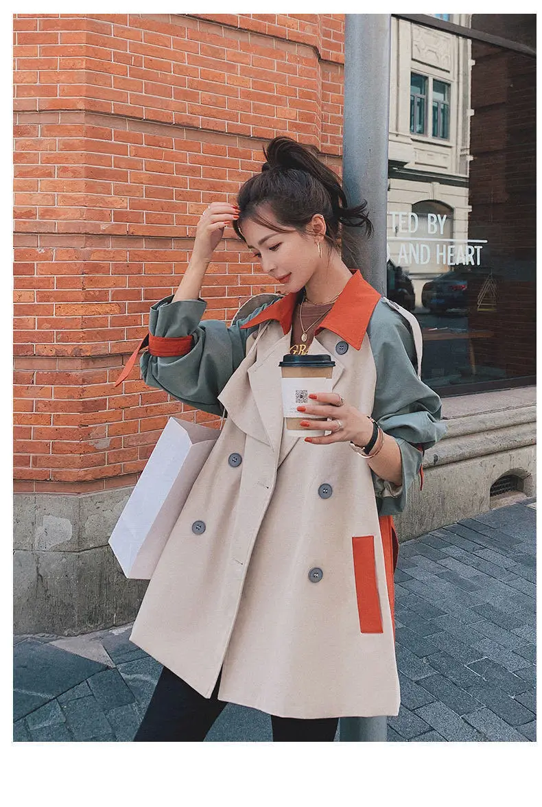 Женская ветровка средней длины в британском стиле Новинка весна-осень 2021 комбинированное контрастное свободное шикарное пальто в Корейском стиле