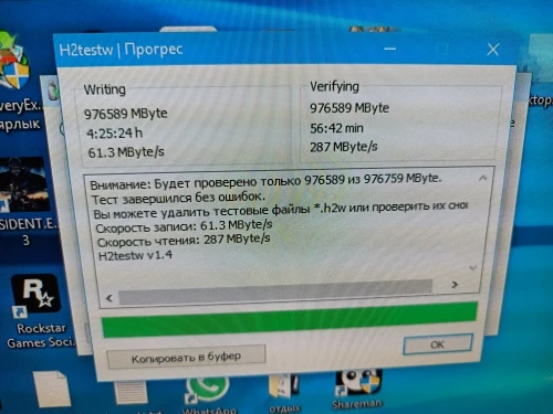 Продавец научился обманывать CrystaDiskMark.Высокая скорость записи держится при копировании файлов до 10Гб, за тем постепенно снижается, в итоге на диске 1Тб при полной проверке показывает 61MByte/s.Не рекомендую данного продавца.