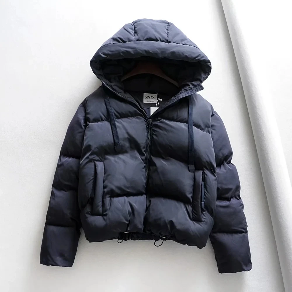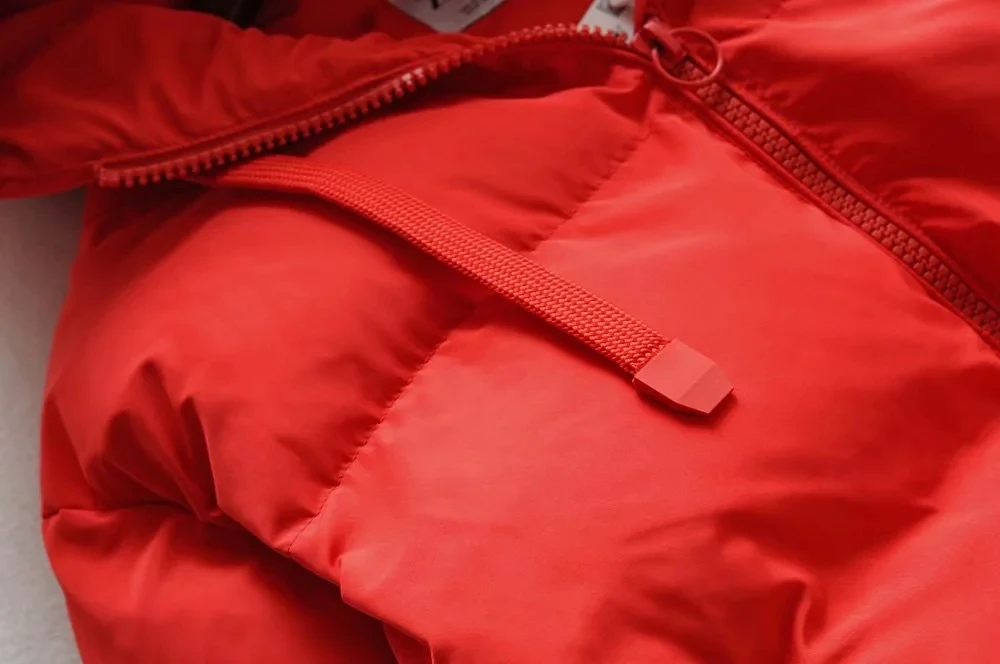 Женская куртка с капюшоном ZA, черная или красная теплая Повседневная парка на молнии, зимнее пуховое пальто, 2021