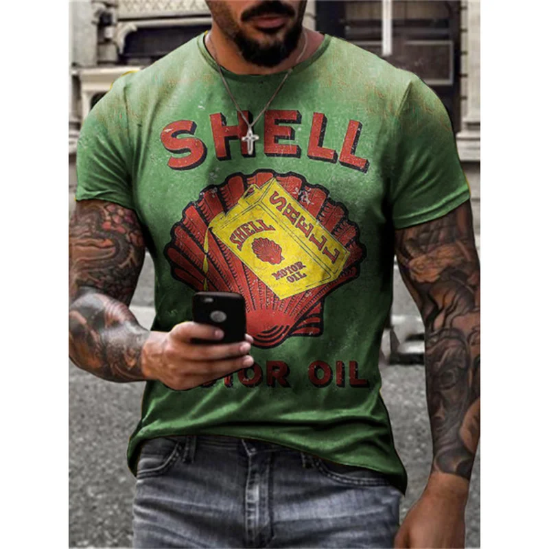 Футболка мужская оверсайз с 3D принтом, повседневная винтажная одежда, рубашка с круглым вырезом и короткими рукавами, модная пляжная спортивная блузка, лето