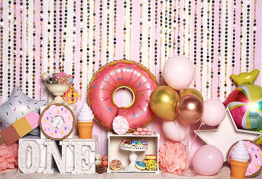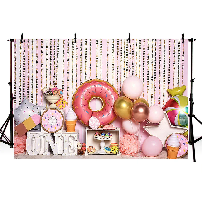 Фон для фотосъемки Mehofond в виде пончика для выращивания конфет мороженого воздушных шаров для девочек торт на 1-й День рождения разбивать Фотостудия
