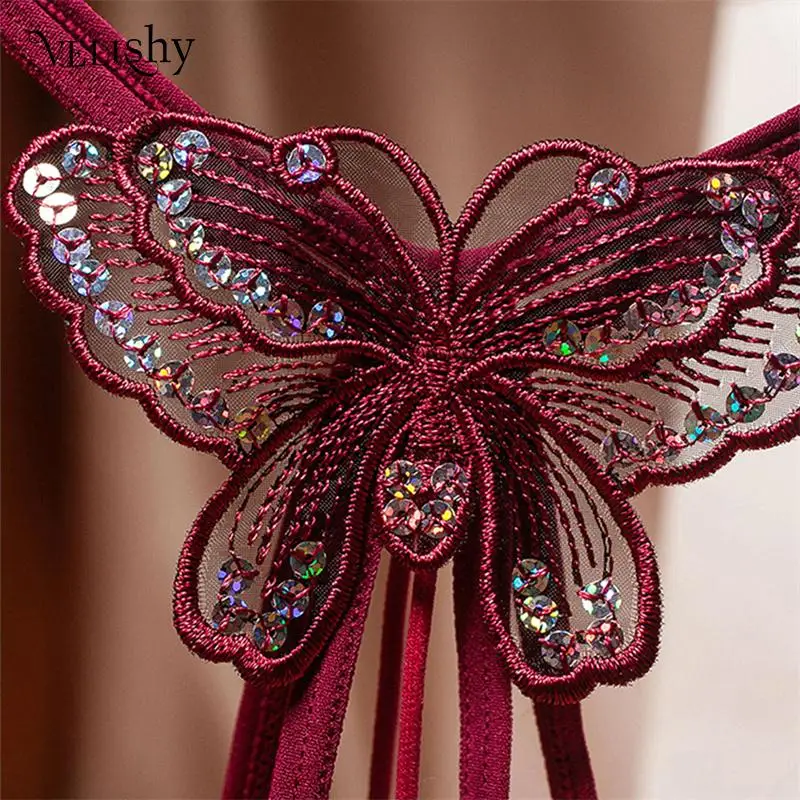 Трусы-стринги с вышивкой в виде бабочки, трусики с жемчужинами, сек...